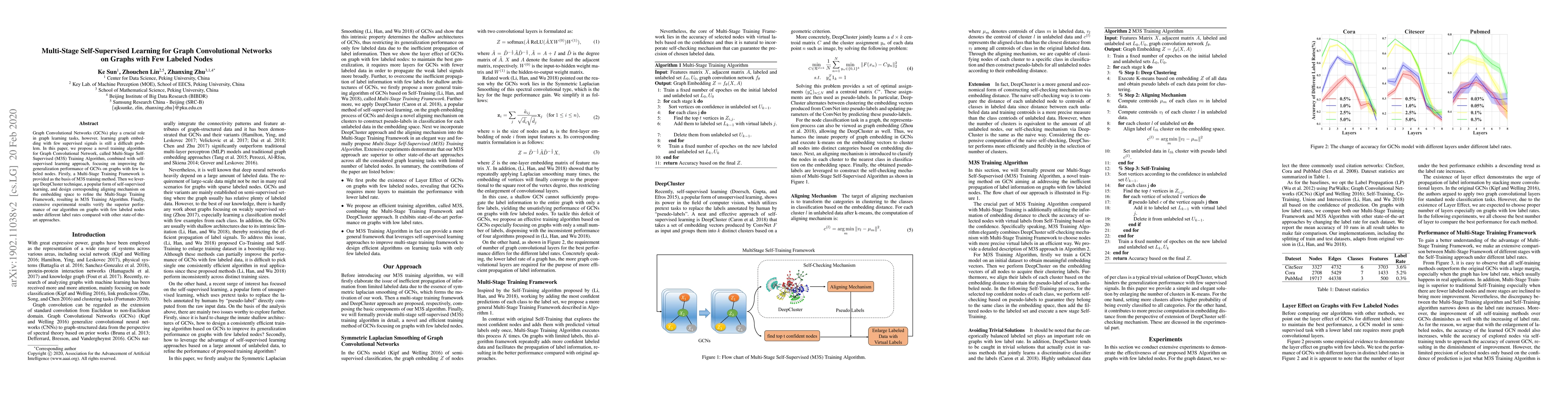 This paper introduces a Multi-Stage Self-Supervised (M3S) Training Algorithm for Graph Convolutional Networks (GCNs) to enhance their performance on graphs with few labeled nodes. The M3S algorithm combines a Multi-Stage Training Framework with DeepCluster for self-supervised learning, achieving superior generalization performance compared to other state-of-the-art methods.