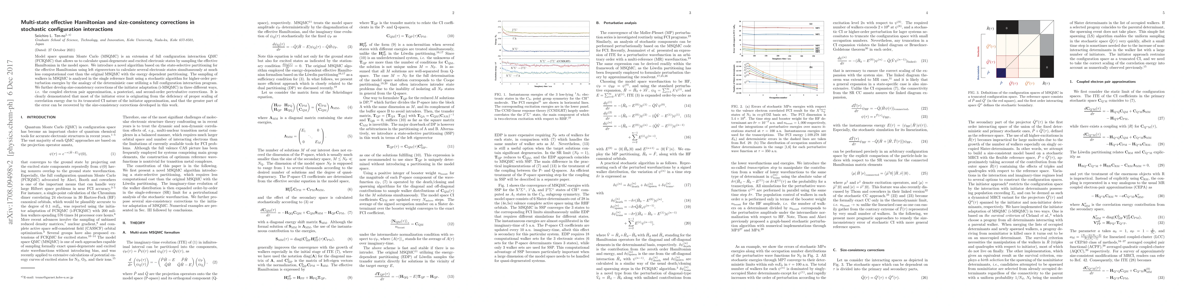 Model space quantum Monte Carlo (MSQMC) is an extension of full configuration interaction QMC (FCIQMC) that allows us to calculate quasi-degenerate and excited electronic states by sampling the effective Hamiltonian in the model space. We introduce a novel algorithm based on the state-selective partitioning for the effective Hamiltonian using left eigenvectors to calculate several electronic states simultaneously at much less computational cost than the original MSQMC with the energy dependent partitioning. The sampling of walkers in MSQMC is analyzed in the single reference limit using a stochastic algorithm for higher-order perturbation energies by the analogy of the deterministic case utilizing a full configuration interaction program. We further develop size-consistency corrections of the initiator adaptation (i-MSQMC) in three different ways, i.e. the coupled electron pair approximation, a posteriori, and second-order pertrubative corrections. It is clearly demonstrated that most of the initiator error is originating from the deficiency of proper scaling of correlation energy due to its truncated CI nature of the initiator approximation, and that the greater part of the error can be recovered by the size-consistency corrections developed in this work.