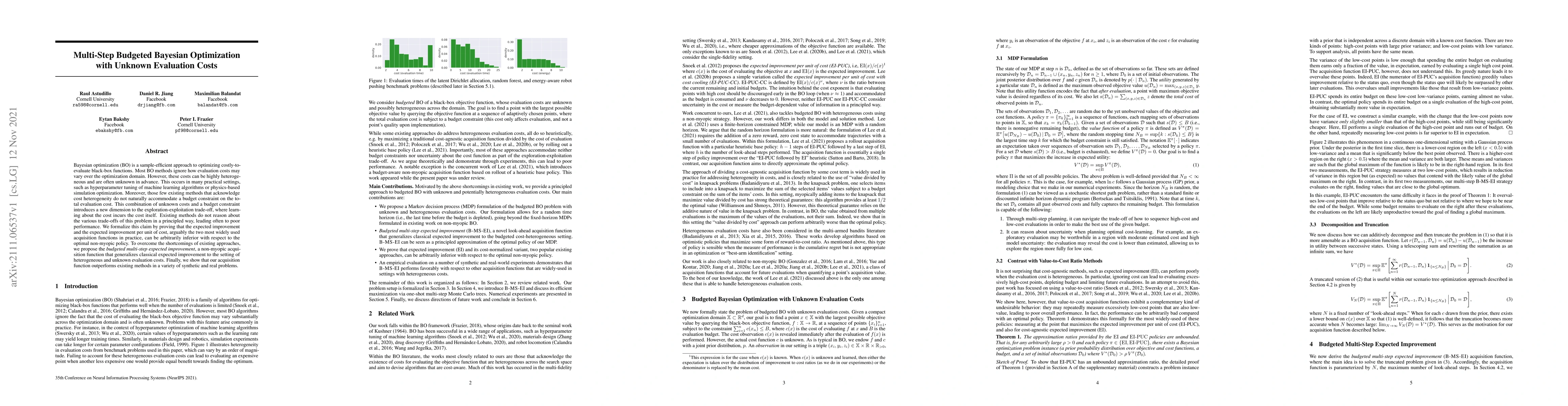 Bayesian optimization (BO) is a sample-efficient approach to optimizing costly-to-evaluate black-box functions. Most BO methods ignore how evaluation costs may vary over the optimization domain. However, these costs can be highly heterogeneous and are often unknown in advance. This occurs in many practical settings, such as hyperparameter tuning of machine learning algorithms or physics-based simulation optimization. Moreover, those few existing methods that acknowledge cost heterogeneity do not naturally accommodate a budget constraint on the total evaluation cost. This combination of unknown costs and a budget constraint introduces a new dimension to the exploration-exploitation trade-off, where learning about the cost incurs the cost itself. Existing methods do not reason about the various trade-offs of this problem in a principled way, leading often to poor performance. We formalize this claim by proving that the expected improvement and the expected improvement per unit of cost, arguably the two most widely used acquisition functions in practice, can be arbitrarily inferior with respect to the optimal non-myopic policy. To overcome the shortcomings of existing approaches, we propose the budgeted multi-step expected improvement, a non-myopic acquisition function that generalizes classical expected improvement to the setting of heterogeneous and unknown evaluation costs. Finally, we show that our acquisition function outperforms existing methods in a variety of synthetic and real problems.