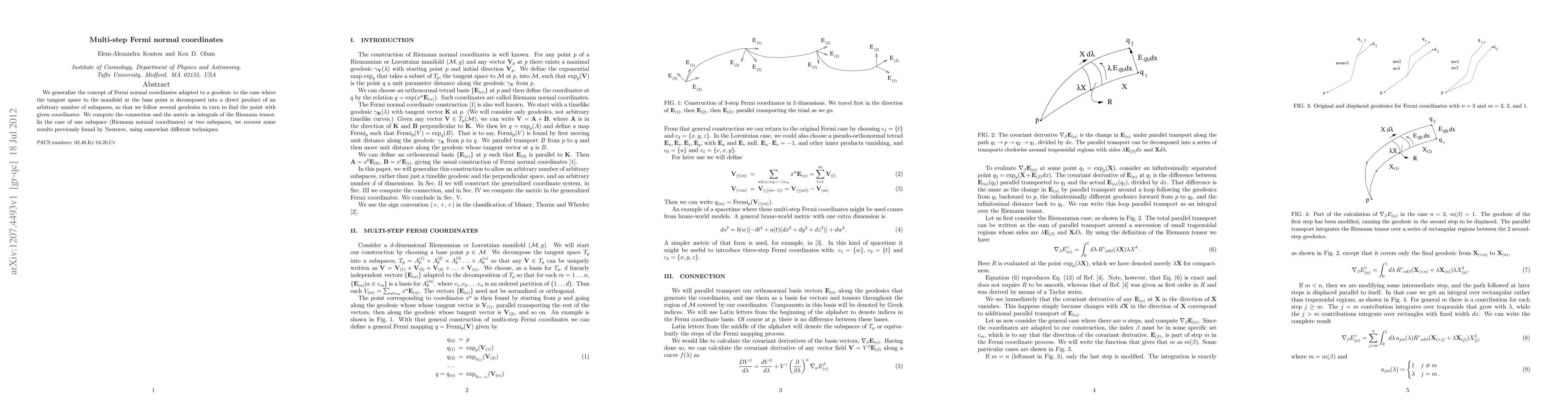 We generalize the concept of Fermi normal coordinates adapted to a geodesic to the case where the tangent space to the manifold at the base point is decomposed into a direct product of an arbitrary number of subspaces, so that we follow several geodesics in turn to find the point with given coordinates. We compute the connection and the metric as integrals of the Riemann tensor. In the case of one subspace (Riemann normal coordinates) or two subspaces, we recover some results previously found by Nesterov, using somewhat different techniques.