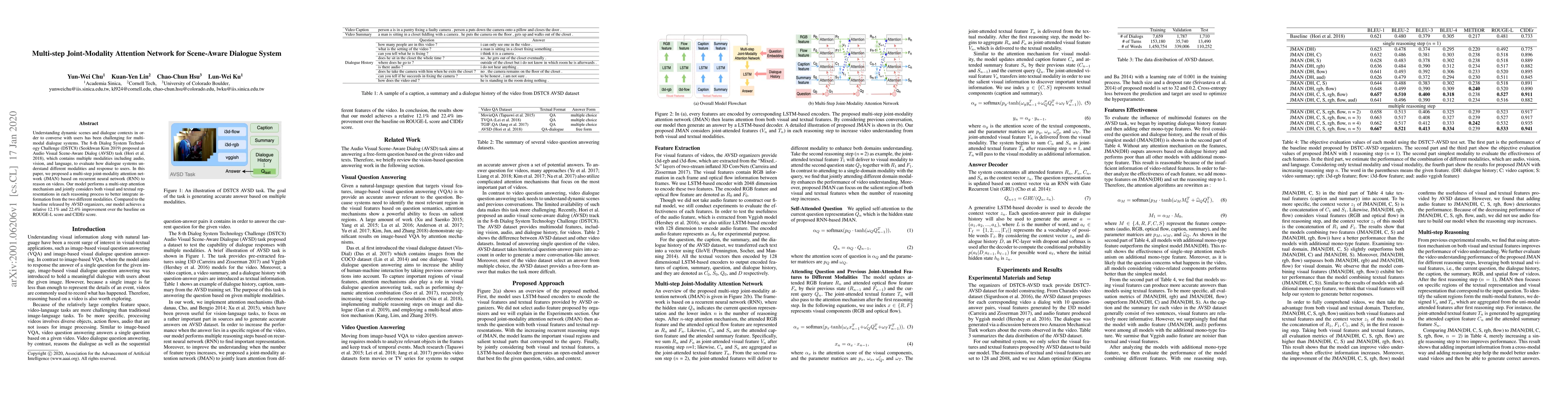 The paper proposes a Multi-step Joint-Modality Attention Network (JMAN) based on Recurrent Neural Networks (RNN) for the Audio Visual Scene-Aware Dialog (AVSD) task. JMAN uses LSTM-based encoders for visual and textual features, a multi-step joint-modality attention mechanism, and an LSTM-based decoder to generate open-ended answers.