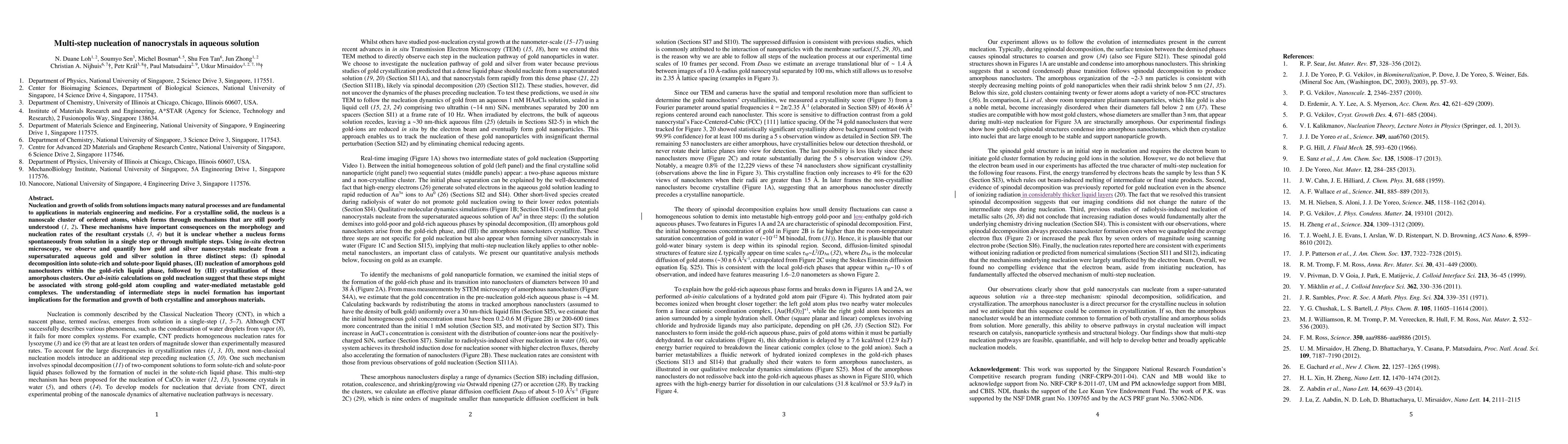 This study reveals a multi-step nucleation process for gold and silver nanocrystals in aqueous solutions, involving spinodal decomposition, formation of amorphous clusters, and subsequent crystallization. These insights are crucial for understanding the formation mechanisms of both crystalline and amorphous materials.