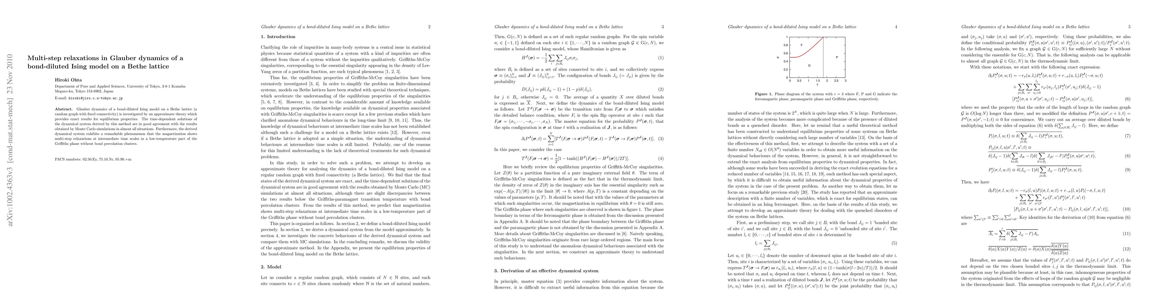 This paper investigates the Glauber dynamics of a bond-diluted Ising model on a Bethe lattice using an approximate theory that matches Monte Carlo simulation results. The study reveals multi-step relaxations in magnetization at intermediate times in the Griffiths phase, absent of bond percolation clusters.