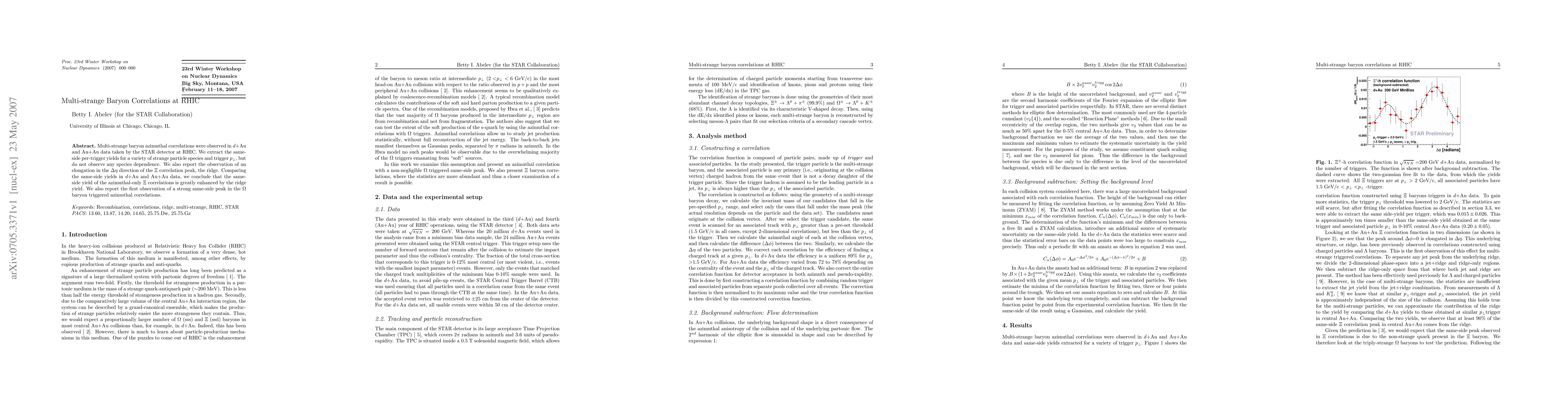 Multi-strange baryon azimuthal correlations were observed in d+Au and Au+Au data taken by the STAR detector at RHIC. We extract the same-side per-trigger yields for a variety of strange particle species and trigger pt, but do not observe any species dependence. We also report the observation of an elongation in the Delta-eta; direction of the Xi correlation peak, the ridge. Comparing the same-side yields in d+Au and Au+Au data, we conclude that the same-side yield of the azimuthal-only Xi correlations is greatly enhanced by the ridge yield. We also report the first observation of a strong same-side peak in the Omega baryon triggered azimuthal correlations.