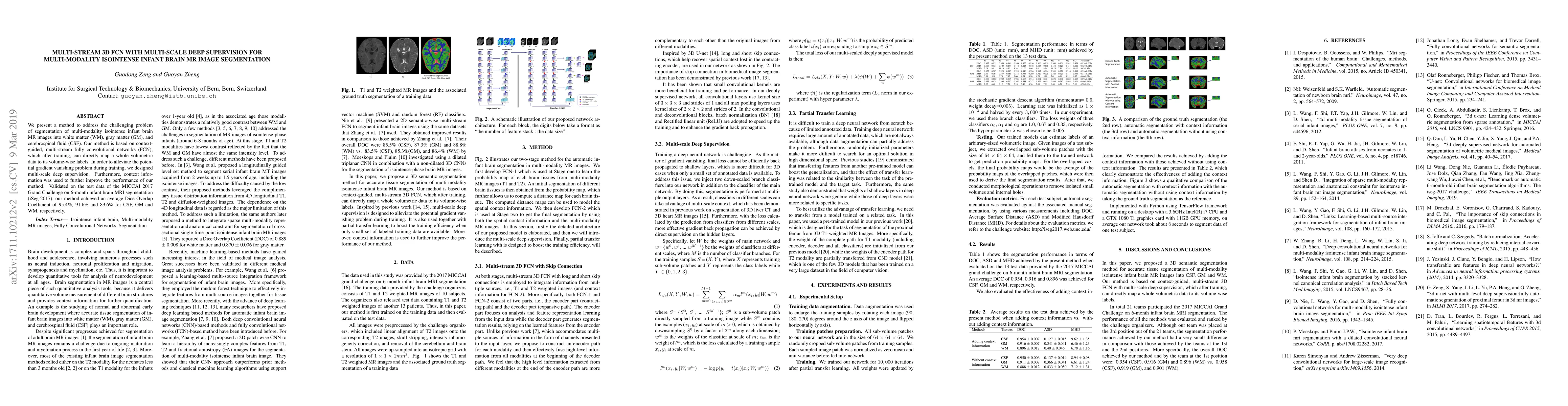 We present a method to address the challenging problem of segmentation of multi-modality isointense infant brain MR images into white matter (WM), gray matter (GM), and cerebrospinal fluid (CSF). Our method is based on context-guided, multi-stream fully convolutional networks (FCN), which after training, can directly map a whole volumetric data to its volume-wise labels. In order to alleviate the poten-tial gradient vanishing problem during training, we designed multi-scale deep supervision. Furthermore, context infor-mation was used to further improve the performance of our method. Validated on the test data of the MICCAI 2017 Grand Challenge on 6-month infant brain MRI segmentation (iSeg-2017), our method achieved an average Dice Overlap Coefficient of 95.4%, 91.6% and 89.6% for CSF, GM and WM, respectively.