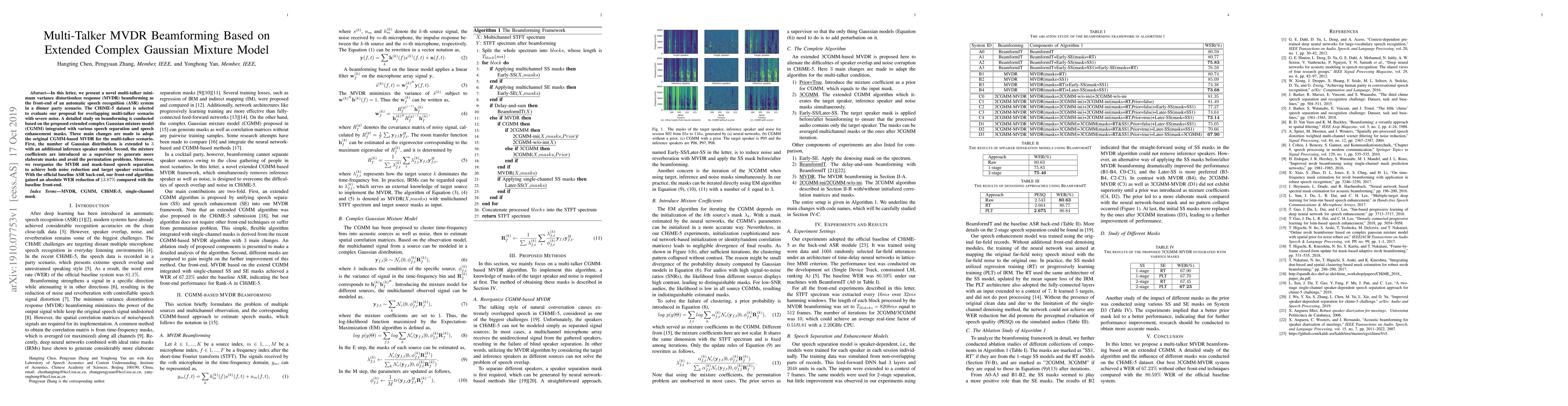 In this letter, we present a novel multi-talker minimum variance distortionless response (MVDR) beamforming as the front-end of an automatic speech recognition (ASR) system in a dinner party scenario. The CHiME-5 dataset is selected to evaluate our proposal for overlapping multi-talker scenario with severe noise. A detailed study on beamforming is conducted based on the proposed extended complex Gaussian mixture model (CGMM) integrated with various speech separation and speech enhancement masks. Three main changes are made to adopt the original CGMM-based MVDR for the multi-talker scenario. First, the number of Gaussian distributions is extended to 3 with an additional inference speaker model. Second, the mixture coefficients are introduced as a supervisor to generate more elaborate masks and avoid the permutation problems. Moreover, we reorganize the MVDR and mask-based speech separation to achieve both noise reduction and target speaker extraction. With the official baseline ASR back-end, our front-end algorithm gained an absolute WER reduction of 13.87% compared with the baseline front-end.