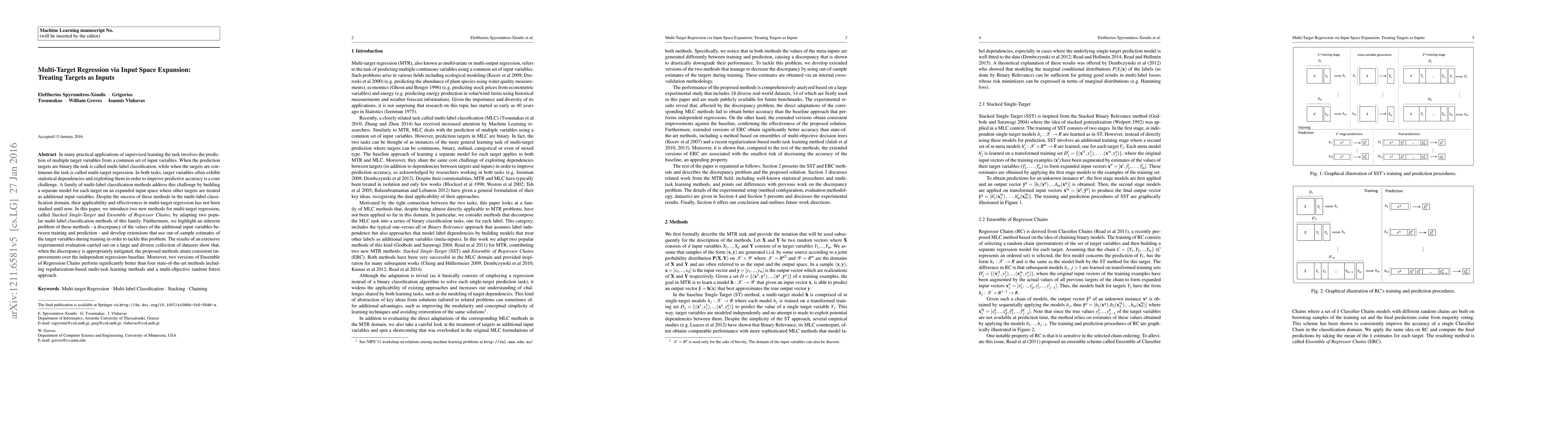 This paper introduces new methods for multi-target regression by adapting multi-label classification techniques, specifically Stacked Single-Target and Ensemble of Regressor Chains. It addresses the issue of input space discrepancy during training and prediction, leading to consistent improvements over independent regression baselines, with the Ensemble of Regression Chains outperforming state-of-the-art methods.