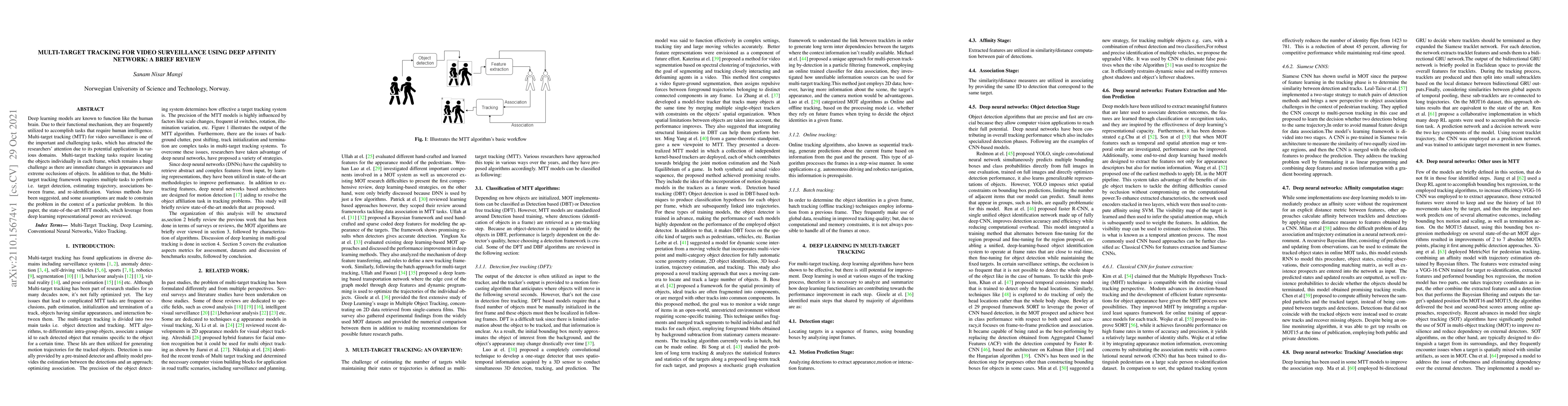 This paper reviews state-of-the-art deep learning models for multi-target tracking in video surveillance, focusing on their ability to handle challenges like appearance changes, occlusions, and the integration of tasks such as detection, trajectory estimation, and re-identification. The review highlights the potential of deep learning to address the complexities of multi-target tracking.