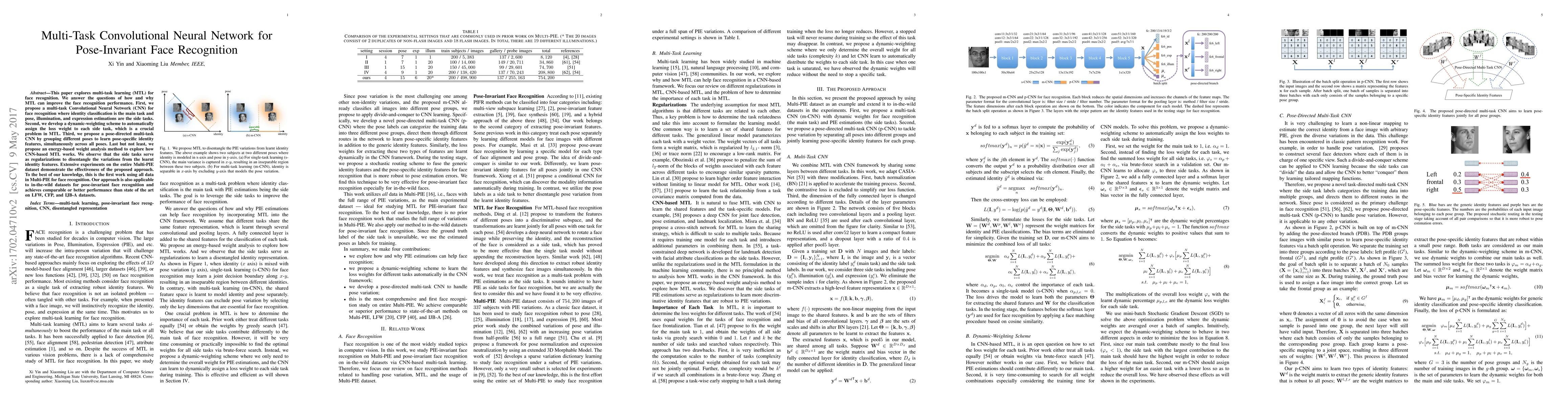 This paper proposes a multi-task Convolutional Neural Network (CNN) for pose-invariant face recognition, utilizing identity classification as the main task and pose, illumination, and expression estimations as side tasks. The approach includes a dynamic-weighting scheme and a pose-directed CNN, demonstrating improved performance across various datasets.