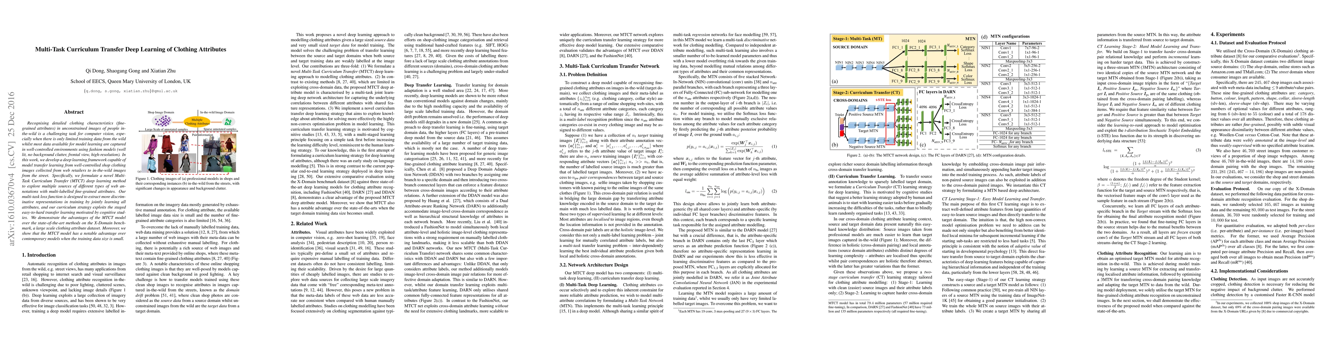 This paper introduces a Multi-Task Curriculum Transfer deep learning framework to recognize fine-grained clothing attributes in unconstrained street images, leveraging transfer learning from controlled shop images. The MTCT model outperforms state-of-the-art methods, especially when training data is limited.