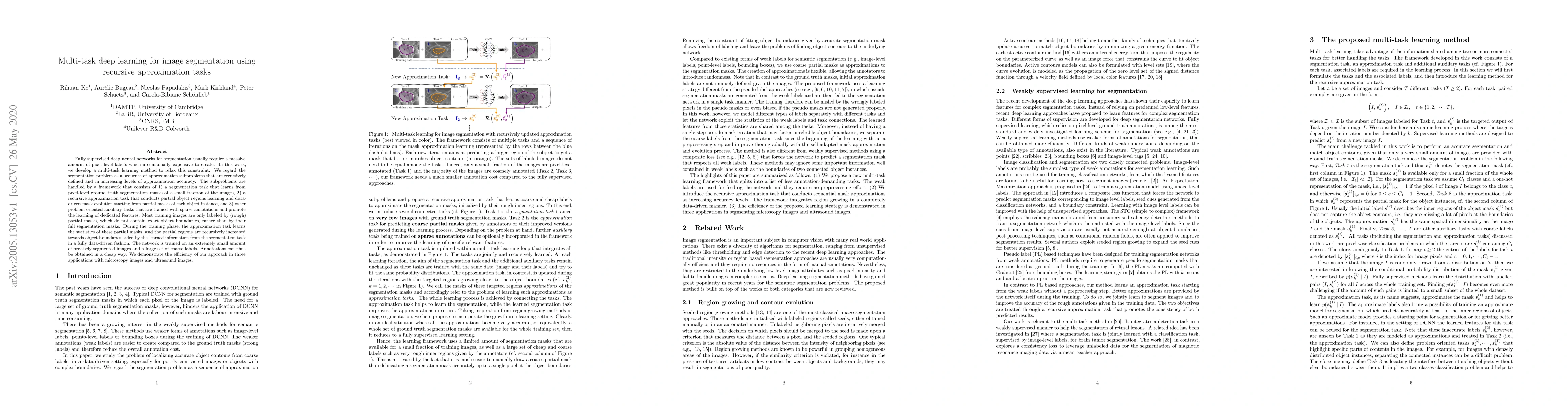 This paper proposes a novel approach to image segmentation using multi-task deep learning with recursive approximation tasks, reducing the need for expensive pixel-level labels.