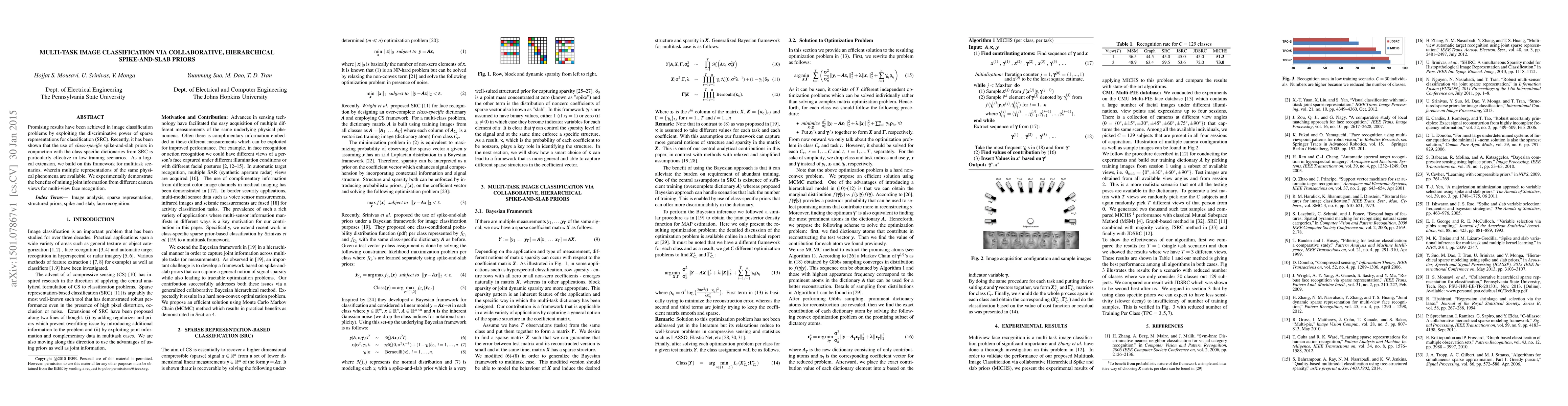 This paper introduces a method for multi-task image classification using collaborative, hierarchical spike-and-slab priors, which improves performance in low-training scenarios by leveraging joint information from different camera views.