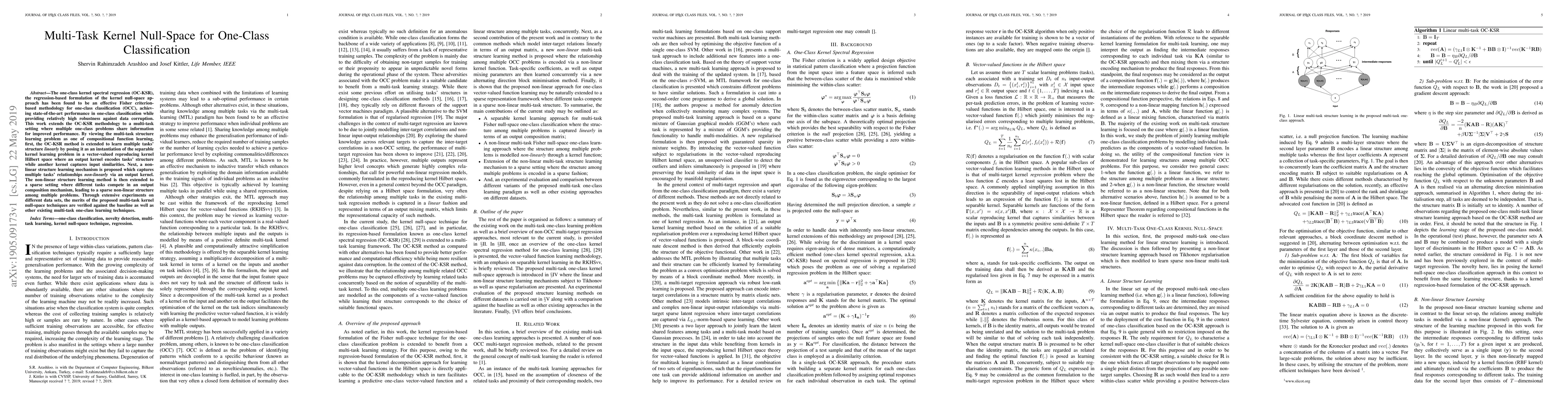 This paper extends the one-class kernel spectral regression method for multi-task one-class classification, proposing both linear and non-linear structure learning mechanisms to share information across multiple classification tasks, and demonstrating improved performance through experiments.