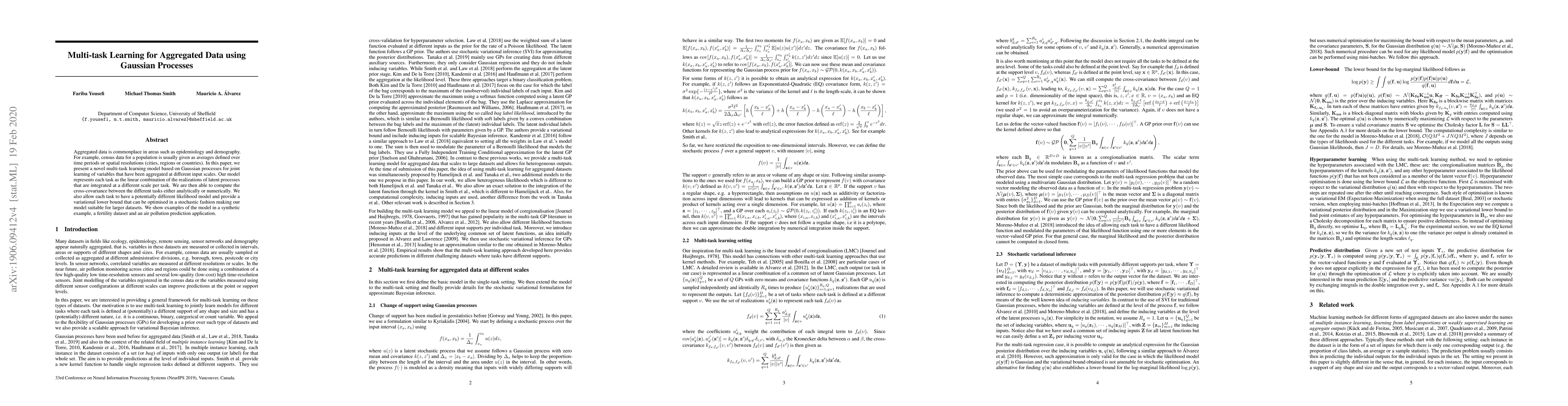 This paper introduces a multi-task learning model based on Gaussian processes for analyzing aggregated data, enabling joint learning across different input scales. The model computes cross-covariance analytically or numerically and is optimized via a variational lower bound, demonstrated through synthetic, fertility, and air pollution datasets.