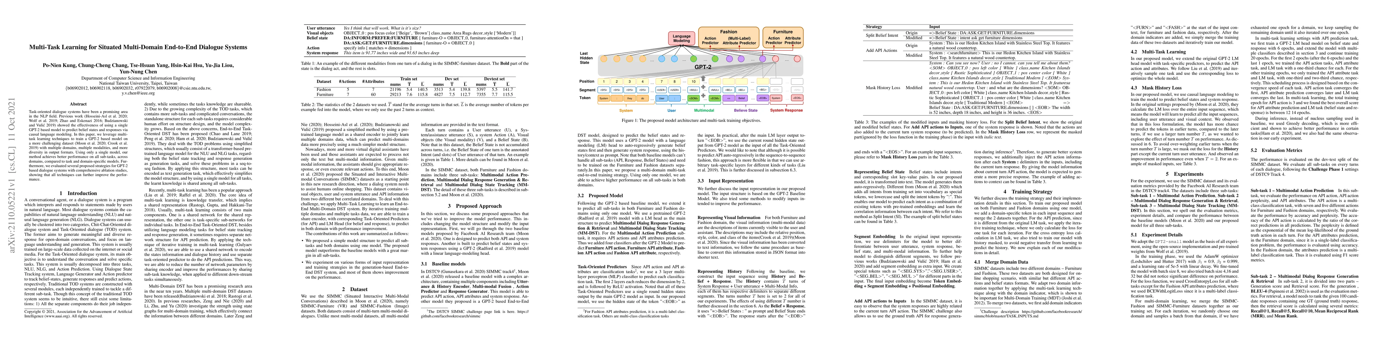 This paper presents a multi-task learning approach for dialogue systems that outperforms single-domain models across multiple domains and modalities. It shows that leveraging a single model can lead to better performance and improved strategies for GPT-2 based dialogue systems.
