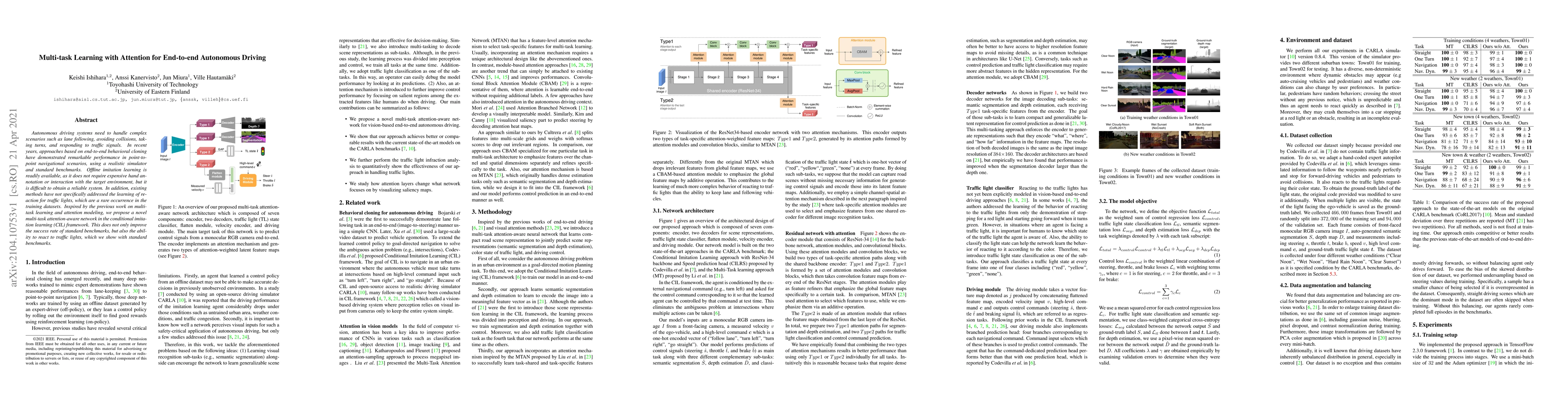 This paper proposes a multi-task attention-aware network within a conditional imitation learning framework to improve autonomous driving systems' performance in complex scenarios. It enhances both the success rate on standard benchmarks and the ability to react to traffic lights, addressing the limitations of existing methods.
