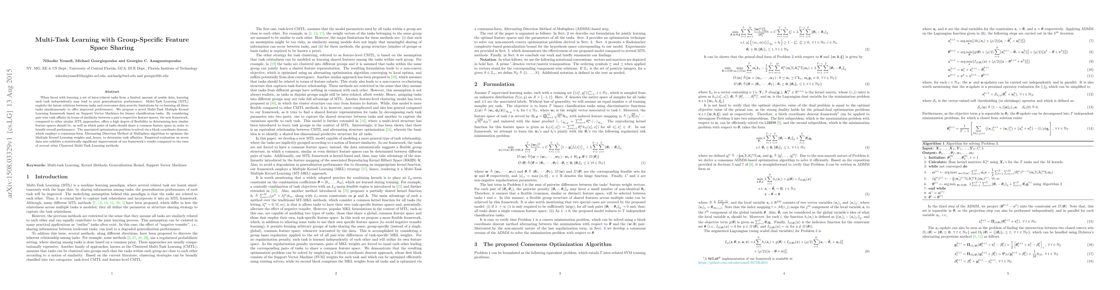 This paper proposes a novel Multi-Task Learning framework using Multi-Kernel Support Vector Machines that leverages group-specific feature space sharing based on task affinity. The method significantly outperforms other Clustered Multi-Task Learning approaches, as demonstrated by empirical evaluations on seven datasets.