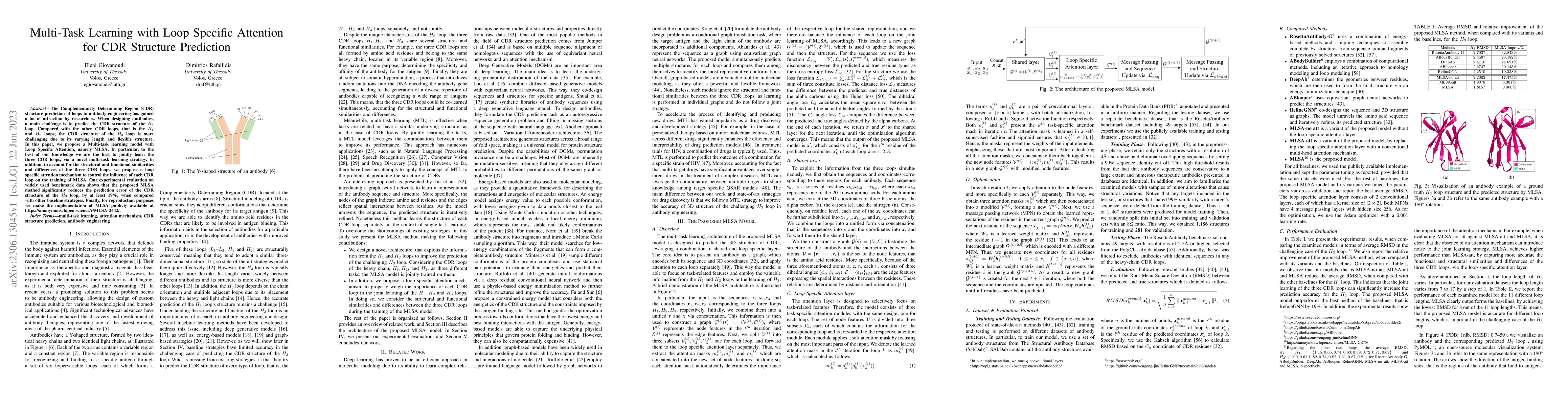 This paper introduces a Multi-task Learning with Loop Specific Attention (MLSA) model to predict the Complementarity Determining Region (CDR) structure of antibody loops, especially focusing on the challenging H3 loop. The proposed method jointly learns the three CDR loops using a novel attention mechanism to enhance prediction accuracy, achieving a 19% reduction in error for H3 loop prediction compared to baselines.