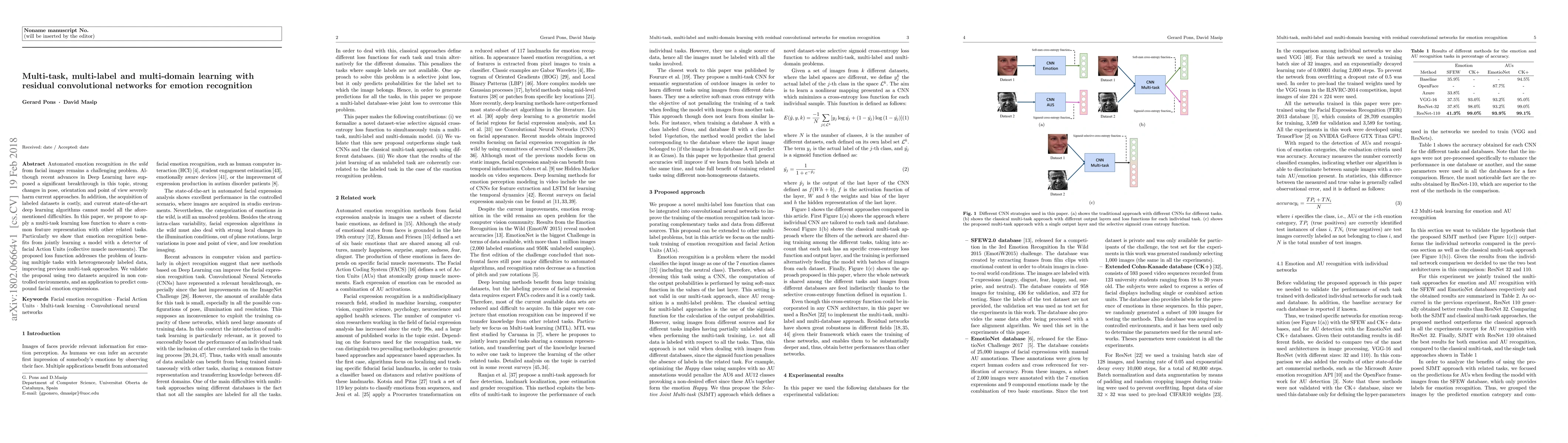 This paper proposes a multi-task learning approach using residual convolutional networks to improve emotion recognition from facial images, addressing challenges like pose variations and limited labeled datasets. The method combines emotion recognition with facial Action Unit detection, enhancing performance through shared feature representation.