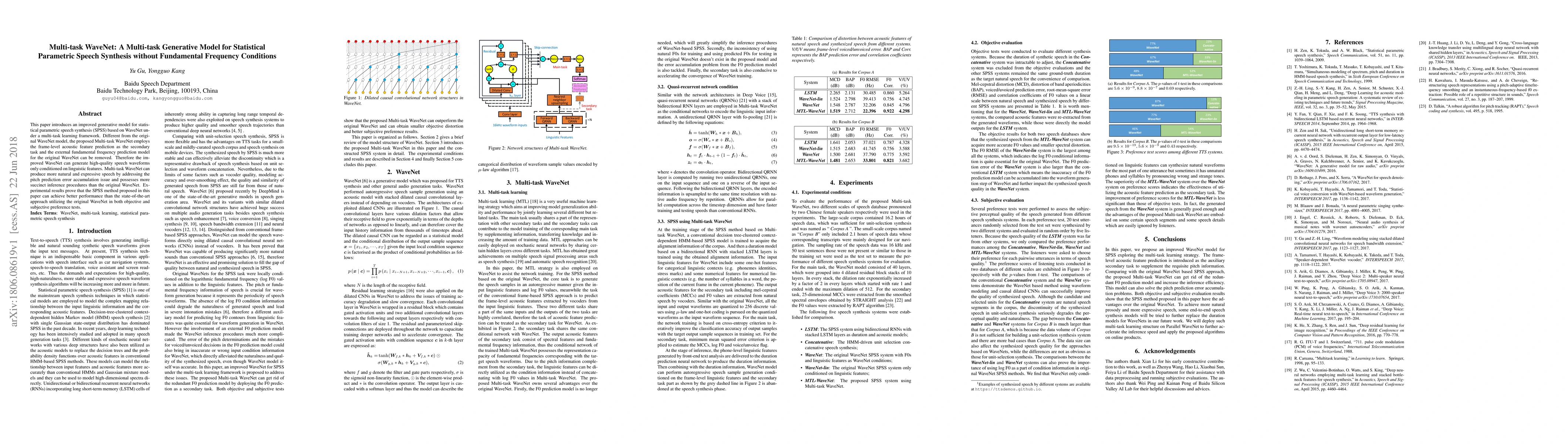 This paper proposes Multi-task WaveNet, an advanced SPSS model that integrates frame-level acoustic feature prediction as a secondary task, eliminating the need for external fundamental frequency conditions. It achieves higher-quality, more natural speech synthesis and better performance than the original WaveNet.