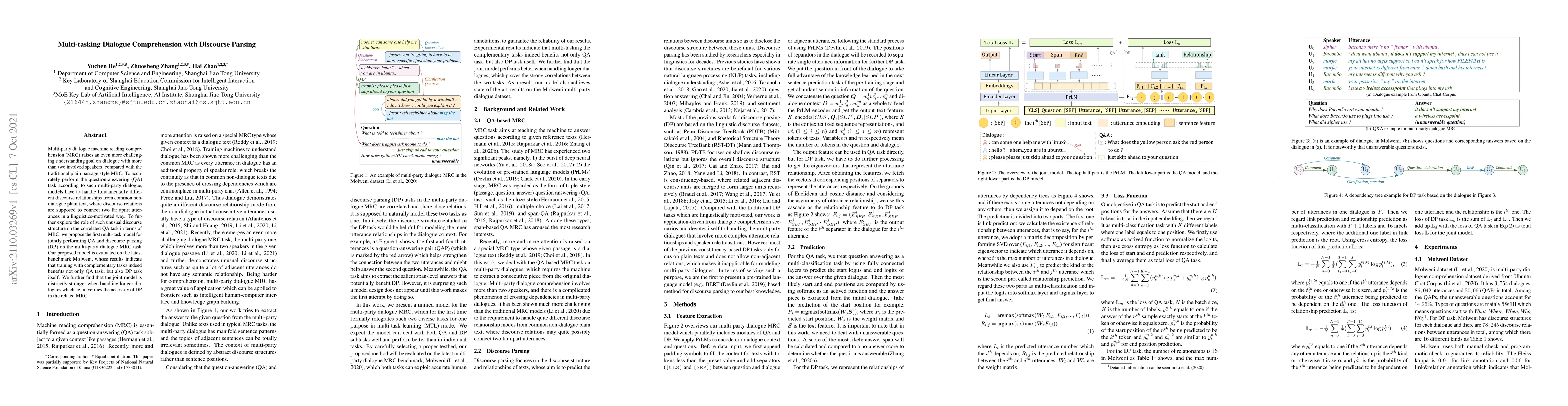 This paper proposes a multi-task model that jointly performs question-answering (QA) and discourse parsing (DP) for multi-party dialogue machine reading comprehension (MRC), showing improved performance for both tasks, particularly in longer dialogues. The model's success demonstrates the importance of DP in multi-party dialogue MRC.