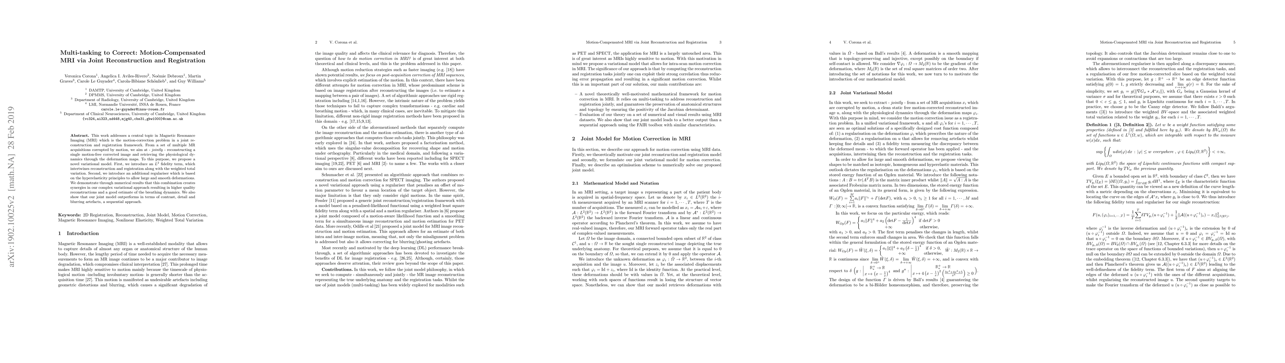 This paper proposes a novel variational model for motion-compensated MRI that jointly reconstructs a motion-free image and estimates physiological dynamics via deformation maps, outperforming sequential methods in terms of contrast, detail, and artifact reduction. The model combines an $L^2$ fidelity term with a hyperelasticity-based regularizer for large, smooth deformations.