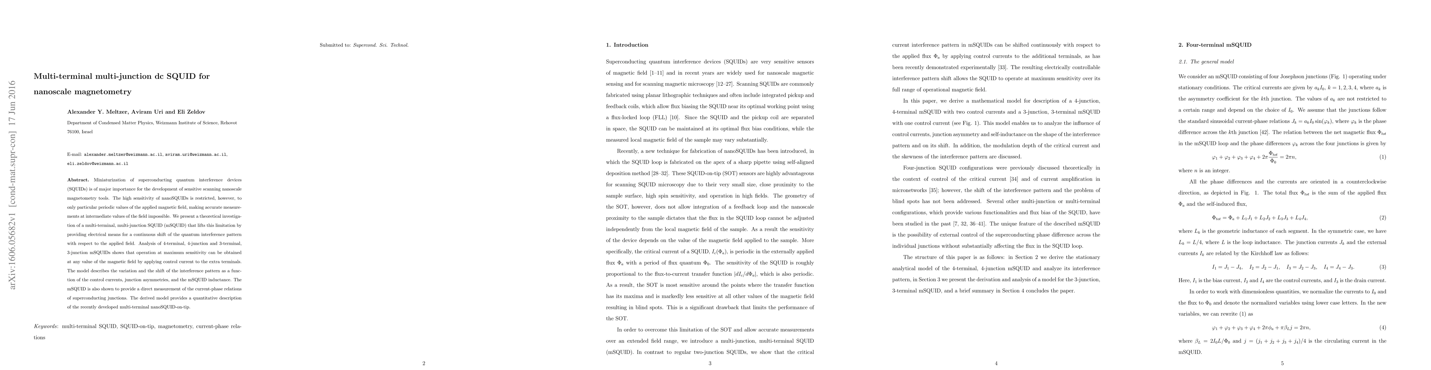 Miniaturization of superconducting quantum interference devices (SQUIDs) is of major importance for the development of sensitive scanning nanoscale magnetometry tools. The high sensitivity of nanoSQUIDs is restricted, however, to only particular periodic values of the applied magnetic field, making accurate measurements at intermediate values of the field impossible. We present a theoretical investigation of a multi-terminal, multi-junction SQUID (mSQUID) that lifts this limitation by providing electrical means for a continuous shift of the quantum interference pattern with respect to the applied field. Analysis of 4-terminal, 4-junction and 3-terminal, 3-junction mSQUIDs shows that operation at maximum sensitivity can be obtained at any value of the magnetic field by applying control current to the extra terminals. The model describes the variation and the shift of the interference pattern as a function of the control currents, junction asymmetries, and the mSQUID inductance. The mSQUID is also shown to provide a direct measurement of the current-phase relations of superconducting junctions. The derived model provides a quantitative description of the recently developed multi-terminal nanoSQUID-on-tip.