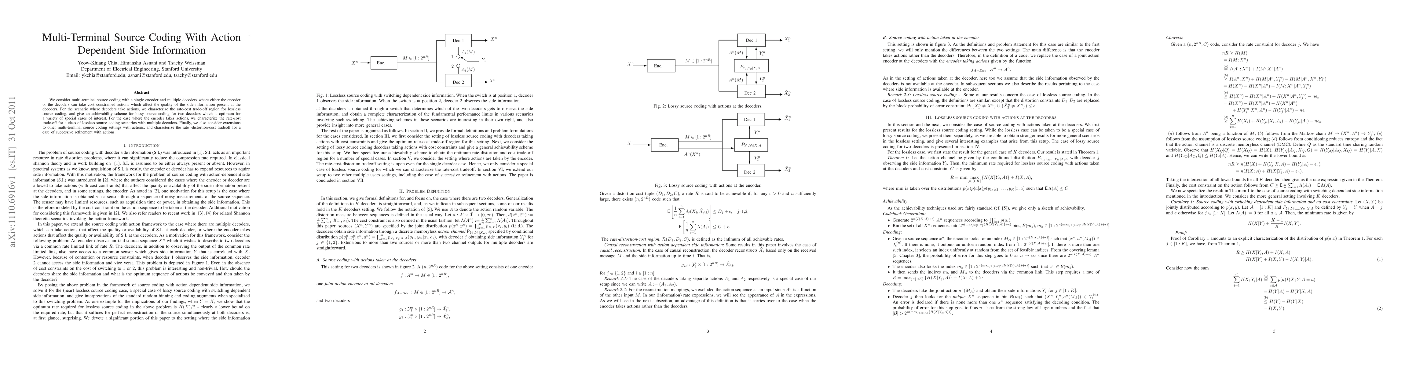 This paper explores multi-terminal source coding with actions that either the encoder or decoders can take to influence side information quality. It characterizes the rate-cost trade-off for lossless and lossy coding scenarios, providing optimal schemes for specific cases and extending the analysis to successive refinement settings.