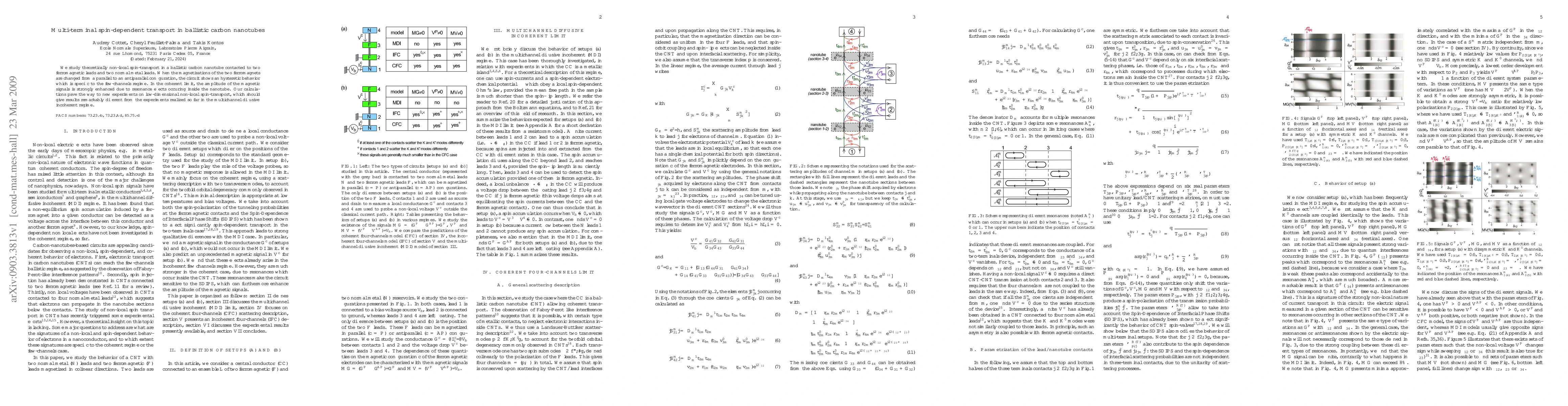 This paper theoretically investigates spin-dependent transport in ballistic carbon nanotubes connected to ferromagnetic and normal-metal leads, revealing enhanced magnetic signals and hysteretic behavior in the few-channel regime due to resonance effects. The findings suggest significant differences in low-dimensional nonlocal spin transport compared to multichannel diffusive systems.