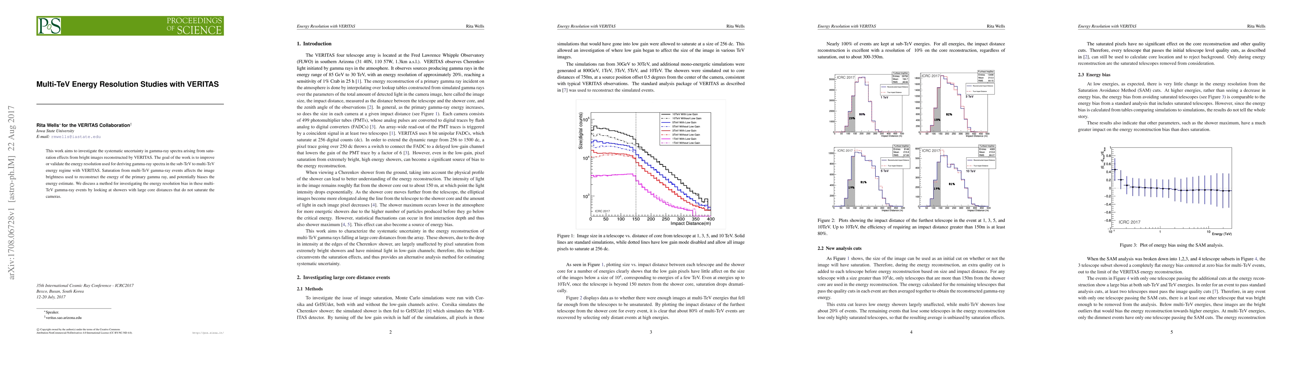 This work aims to investigate the systematic uncertainty in gamma-ray spectra arising from saturation effects from bright images reconstructed by VERITAS. The goal of the work is to improve or validate the energy resolution used for deriving gamma-ray spectra in the sub-TeV to multi-TeV energy regime with VERITAS. Saturation from multi-TeV gamma-ray events affects the image brightness used to reconstruct the energy of the primary gamma ray, and potentially biases the energy estimate. We discuss a method for investigating the energy resolution bias in these multi-TeV gamma-ray events by looking at showers with large core distances that do not saturate the cameras.