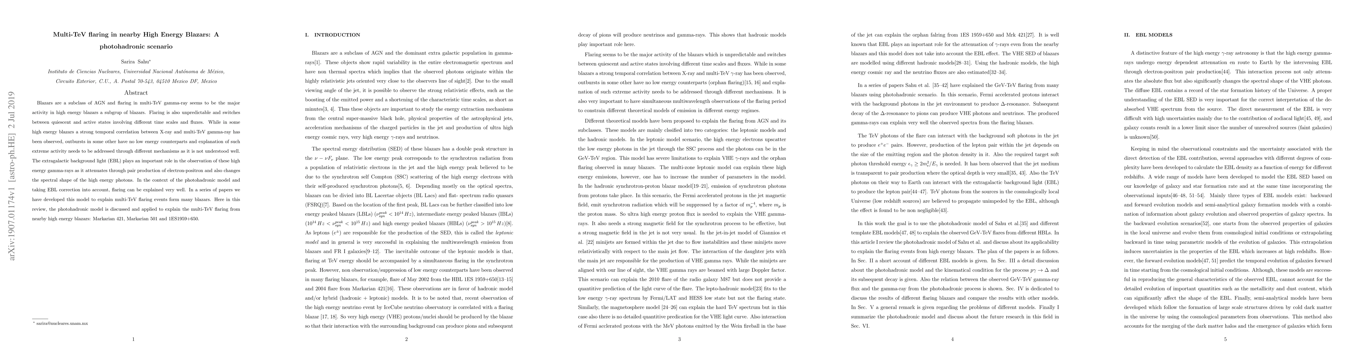 This paper reviews the photohadronic model to explain multi-TeV flaring in nearby high energy blazars, emphasizing its effectiveness in accounting for the observed gamma-ray emissions and the role of the extragalactic background light in shaping the spectral characteristics of these flares.