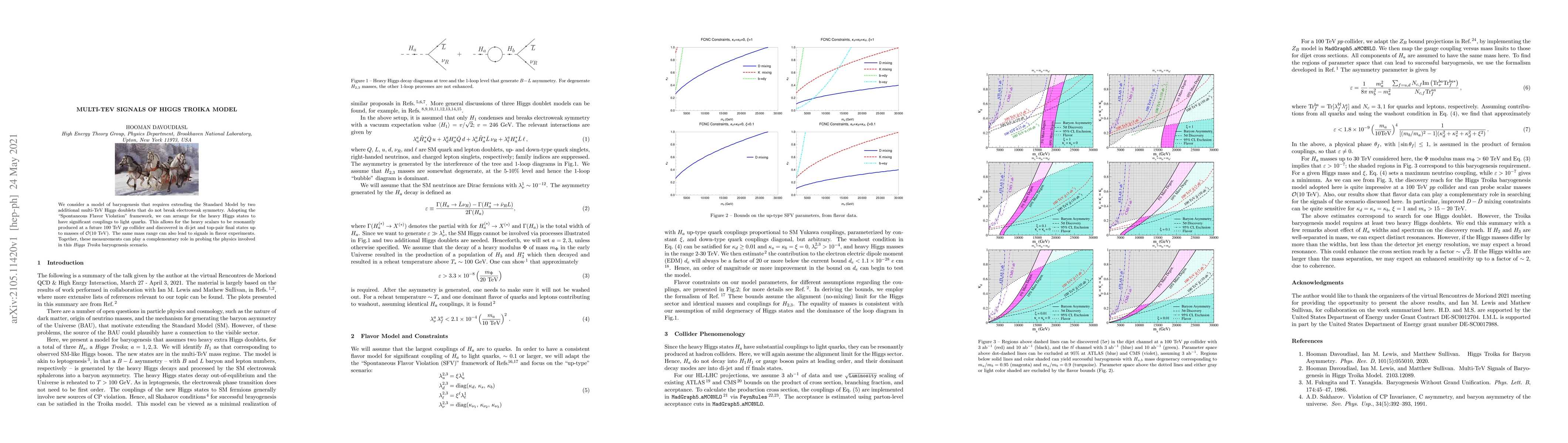 We consider a model of baryogenesis that requires extending the Standard Model by two additional multi-TeV Higgs doublets that do not break electroweak symmetry. Adopting the ``Spontaneous Flavor Violation" framework, we can arrange for the heavy Higgs states to have significant couplings to light quarks. This allows for the heavy scalars to be resonantly produced at a future 100 TeV $pp$ collider and discovered in di-jet and top-pair final states up to masses of $\mathcal{O}$(10 TeV). The same mass range can also lead to signals in flavor experiments. Together, these measurements can play a complementary role in probing the physics involved in this Higgs Troika baryogenesis scenario.
