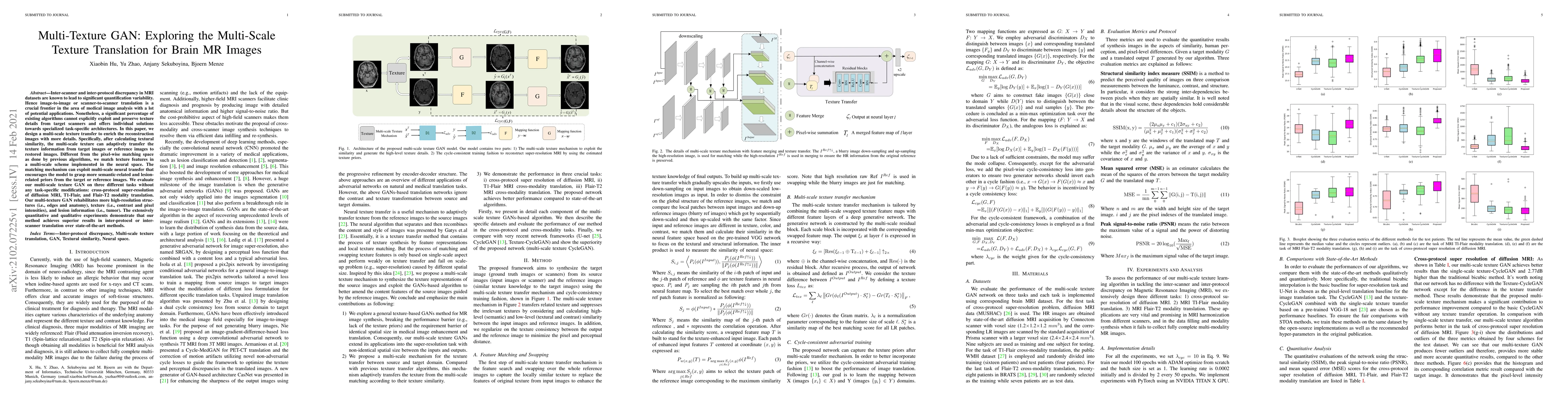 This paper proposes a multi-scale texture GAN to address discrepancies in MRI datasets from different scanners and protocols, enhancing the translation of texture details. The method adaptively transfers texture information from target or reference images to reconstructed images, achieving superior results in tasks like super-resolution and modality translation compared to state-of-the-art methods.