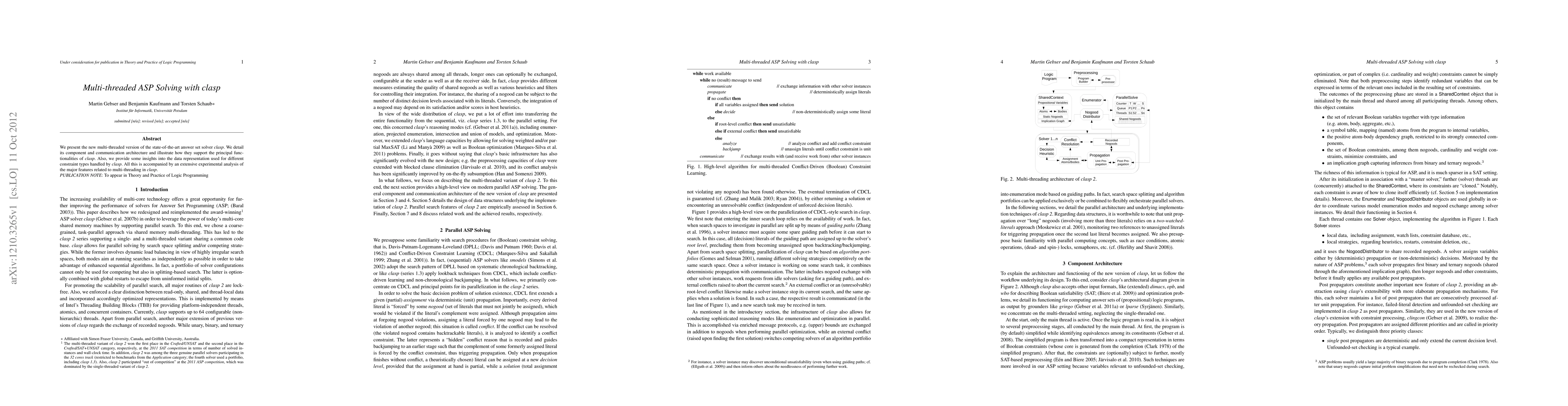 This paper introduces a multi-threaded version of the leading answer set solver clasp, detailing its architecture and communication mechanisms that enhance its principal functionalities. The study also includes an extensive experimental analysis of its multi-threading features.