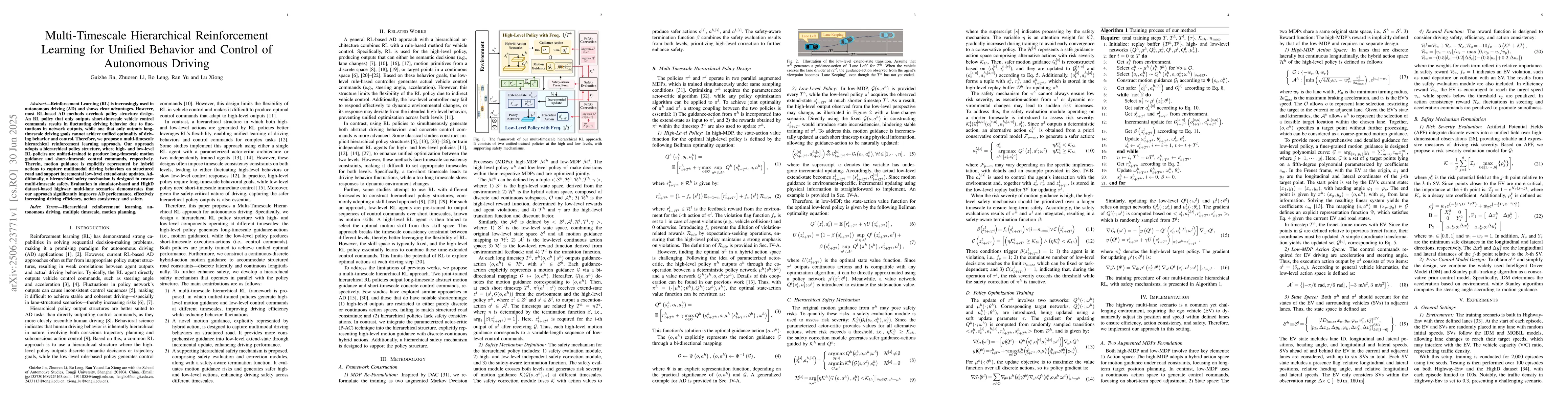 The research proposes a multi-timescale hierarchical reinforcement learning method for autonomous driving. This approach unifies training of high-level policies for long-term motion guidance and low-level policies for short-term control, enhancing driving efficiency, consistency, and safety in highway scenarios.
