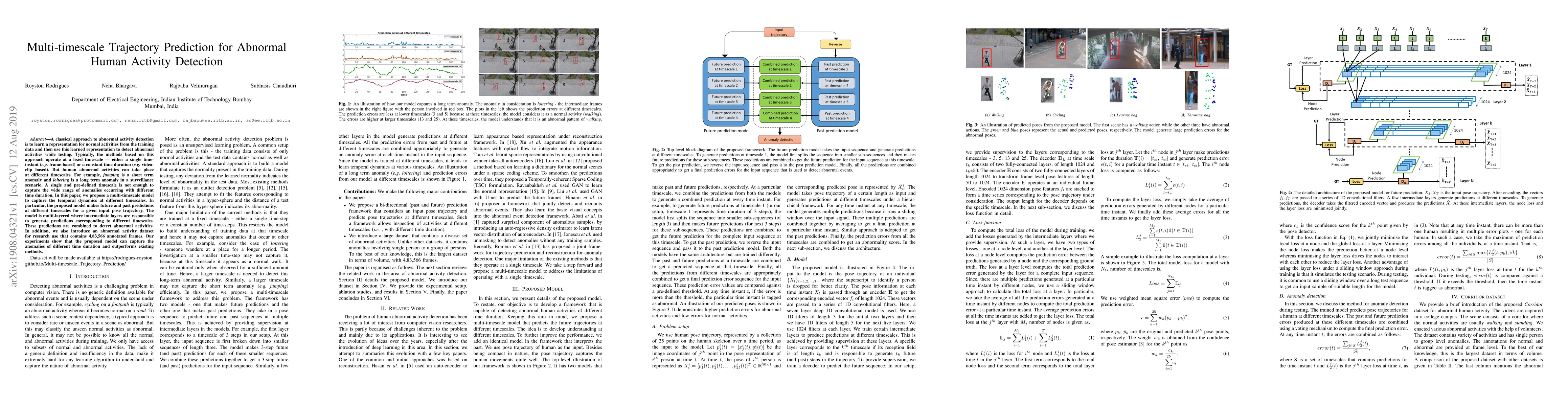 This paper proposes a multi-timescale model for detecting abnormal human activities by making predictions at different temporal scales to capture anomalies of varying durations. The model combines predictions from multiple layers to identify abnormal activities and introduces a new dataset for research purposes.