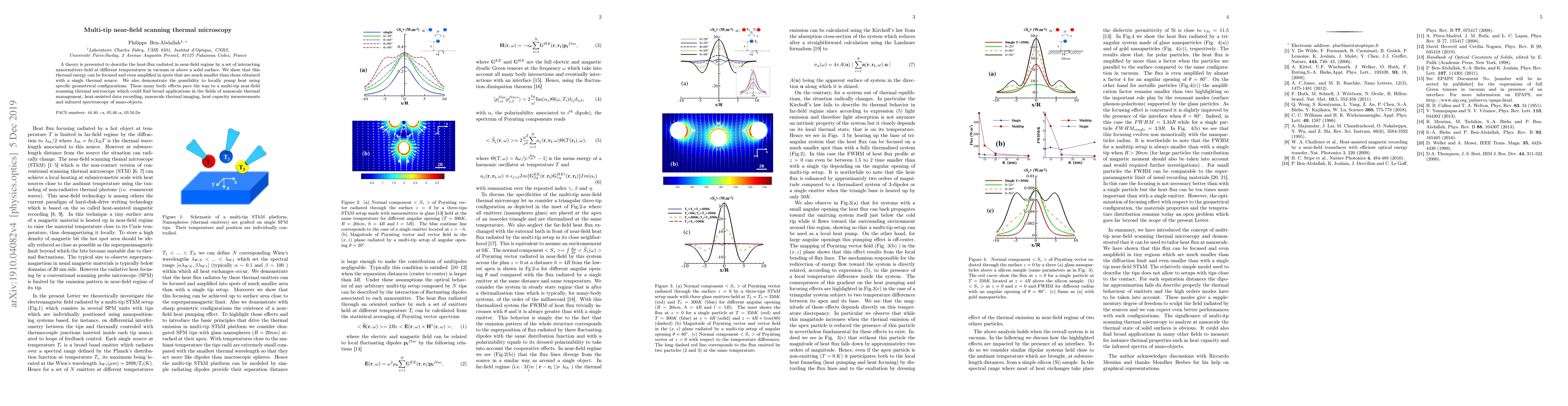 This paper proposes a theory for multi-tip near-field scanning thermal microscopy, demonstrating focused and amplified thermal energy in nanoscale spots through interacting nanoemitters. The technique enables applications in nanoscale thermal management, heat-assisted data recording, and thermal imaging.
