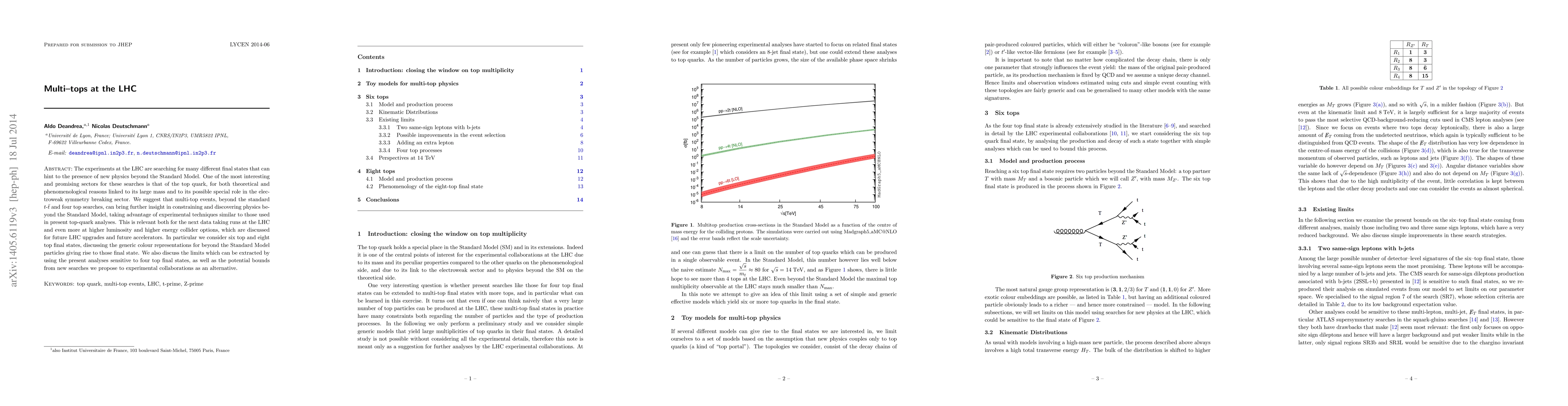 The experiments at the LHC are searching for many different final states that can hint to the presence of new physics beyond the Standard Model. One of the most interesting and promising sectors for these searches is that of the top quark, for both theoretical and phenomenological reasons linked to its large mass and to its possible special role in the electroweak symmetry breaking sector. We suggest that multi-top events, beyond the standard $t$-$\bar t$ and four top searches, can bring further insight in constraining and discovering physics beyond the Standard Model, taking advantage of experimental techniques similar to those used in present top-quark analyses. This is relevant both for the next data taking runs at the LHC and even more at higher luminosity and higher energy collider options, which are discussed for future LHC upgrades and future accelerators. In particular we consider six top and eight top final states, discussing the generic colour representations for beyond the Standard Model particles giving rise to those final state. We also discuss the limits which can be extracted by using the present analyses sensitive to four top final states, as well as the potential bounds from new searches we propose to experimental collaborations as an alternative.