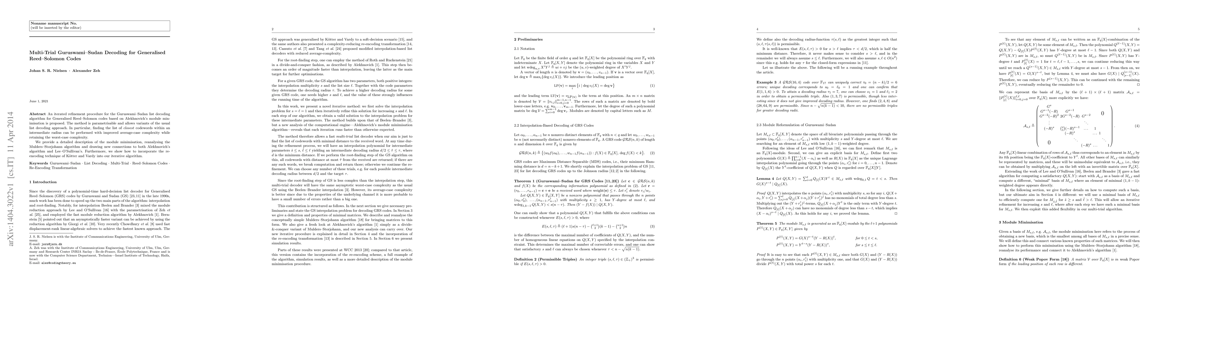 This paper proposes an iterated refinement procedure for the Guruswami-Sudan list decoding algorithm for Generalised Reed-Solomon codes, improving average-case complexity through module minimisation and incorporating Kotter and Vardy's re-encoding technique. The method allows for parametrisable variants of list decoding, drawing connections to existing algorithms.