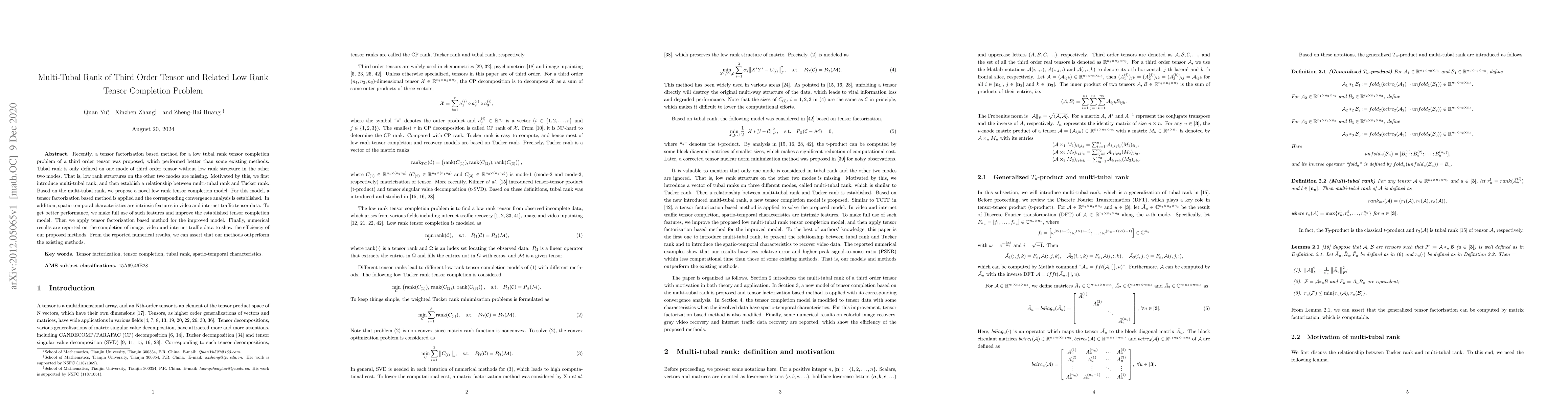 This paper introduces multi-tubal rank for third-order tensors and proposes a novel low rank tensor completion model based on it, outperforming existing methods. The model leverages spatio-temporal features and tensor factorization, demonstrating superior performance in completing image, video, and internet traffic data.