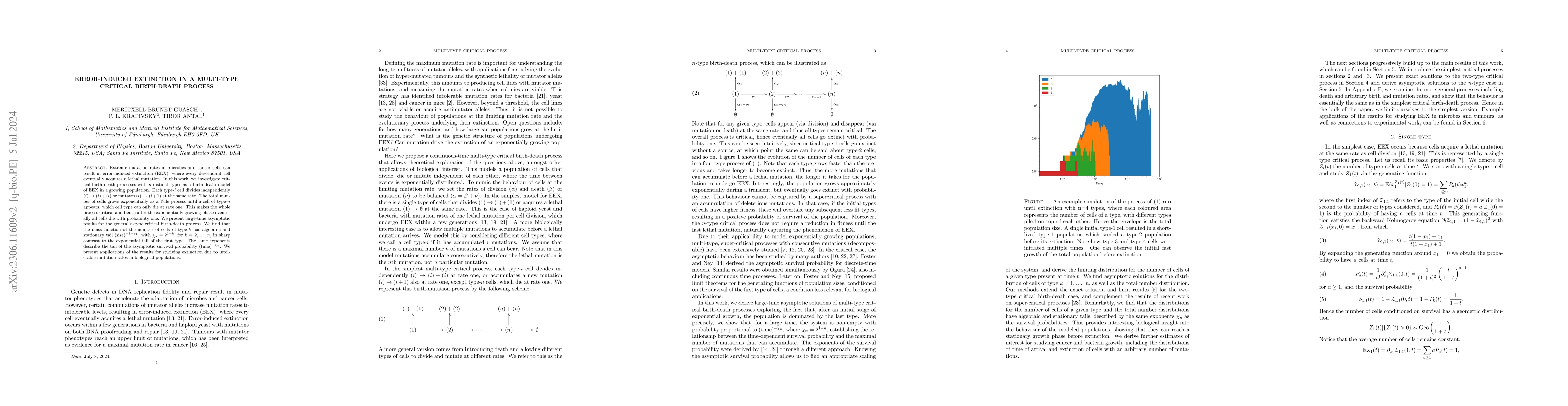 This paper investigates a multi-type critical birth-death process, where cells of $n$ distinct types divide and mutate at equal rates until the appearance of the maximal type, which leads to eventual extinction. The study reveals algebraic tails in the mass function and survival probability, contrasting with the exponential decay of the first type, with implications for understanding mutational burden and error catastrophe in biological populations.