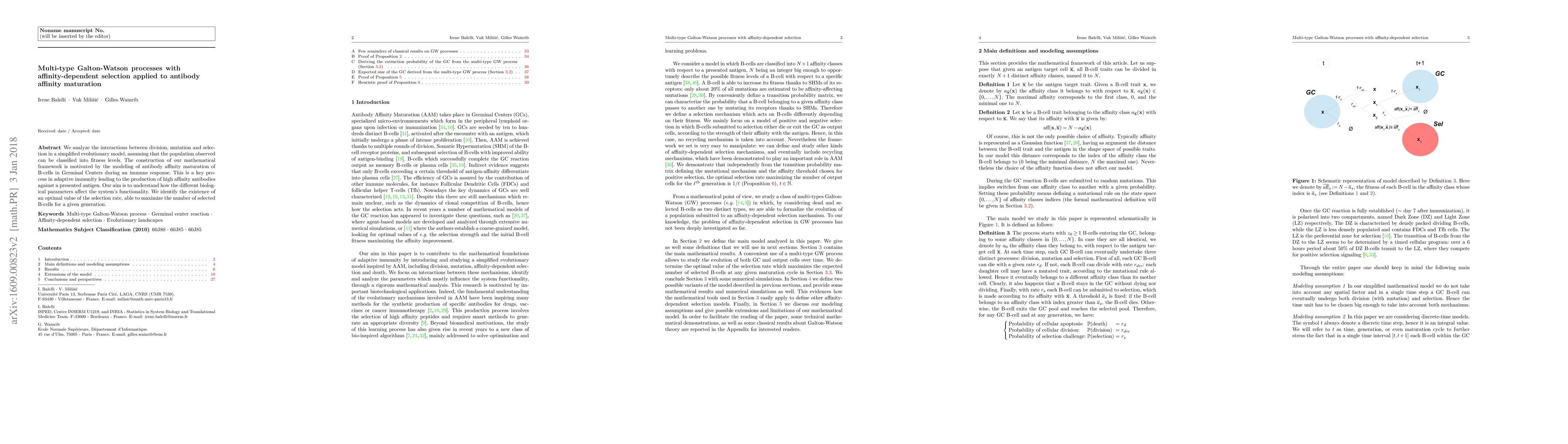 This paper examines a multi-type Galton-Watson process with affinity-dependent selection to model antibody affinity maturation in B-cells. It identifies an optimal selection rate that maximizes the number of high-affinity antibodies produced in the immune response.