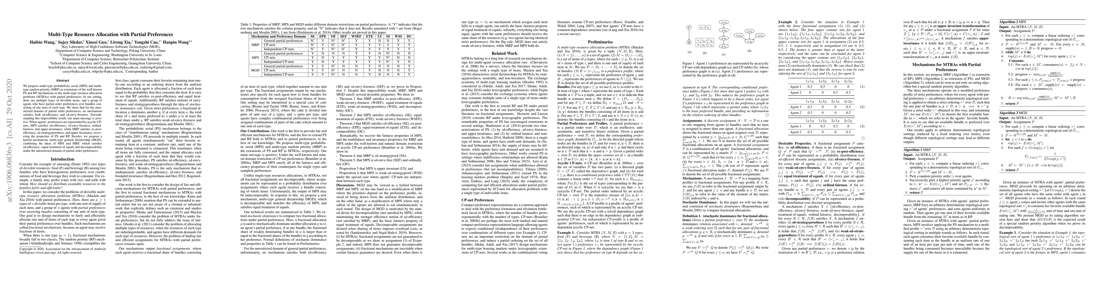 We propose multi-type probabilistic serial (MPS) and multi-type random priority (MRP) as extensions of the well known PS and RP mechanisms to the multi-type resource allocation problem (MTRA) with partial preferences. In our setting, there are multiple types of divisible items, and a group of agents who have partial order preferences over bundles consisting of one item of each type. We show that for the unrestricted domain of partial order preferences, no mechanism satisfies both sd-efficiency and sd-envy-freeness. Notwithstanding this impossibility result, our main message is positive: When agents' preferences are represented by acyclic CP-nets, MPS satisfies sd-efficiency, sd-envy-freeness, ordinal fairness, and upper invariance, while MRP satisfies ex-post-efficiency, sd-strategy-proofness, and upper invariance, recovering the properties of PS and RP.