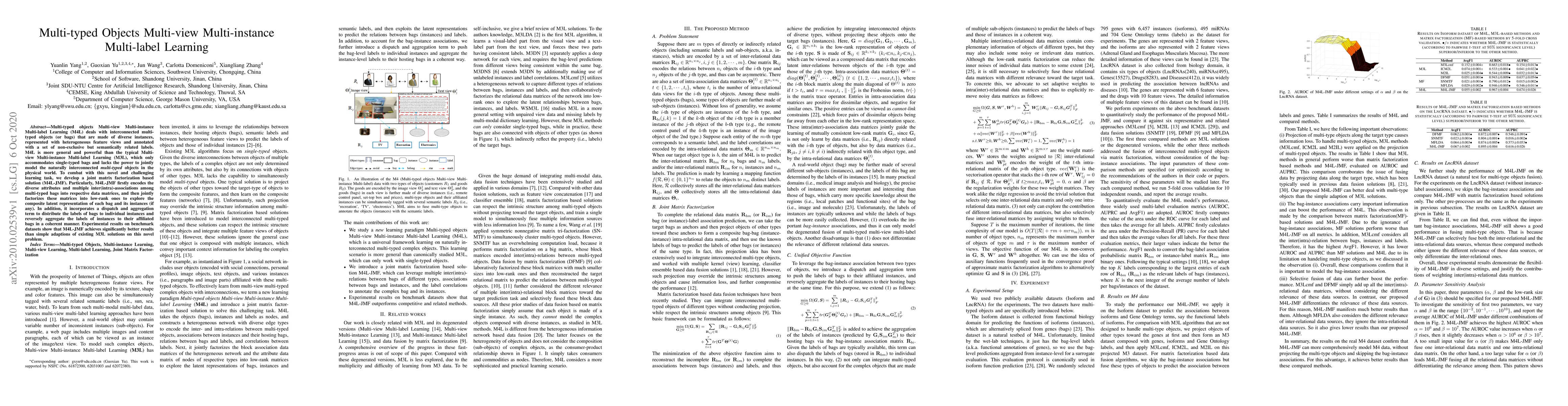 This paper introduces Multi-typed Objects Multi-view Multi-instance Multi-label Learning (M4L), a more general framework than traditional Multi-view Multi-instance Multi-label Learning (M3L) that can handle interconnected multi-typed objects. The proposed M4L-JMF solution uses joint matrix factorization to model diverse attributes and inter-associations, achieving better performance on benchmark datasets.