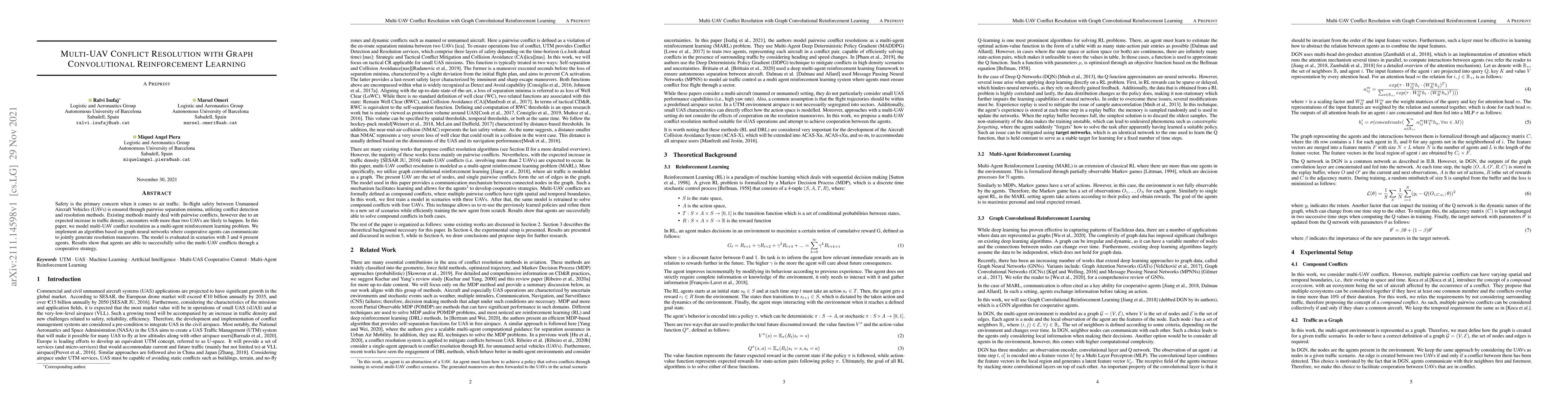 The paper introduces a graph convolutional reinforcement learning algorithm for multi-UAV conflict resolution, enabling cooperative agents to communicate and jointly generate resolution maneuvers.
