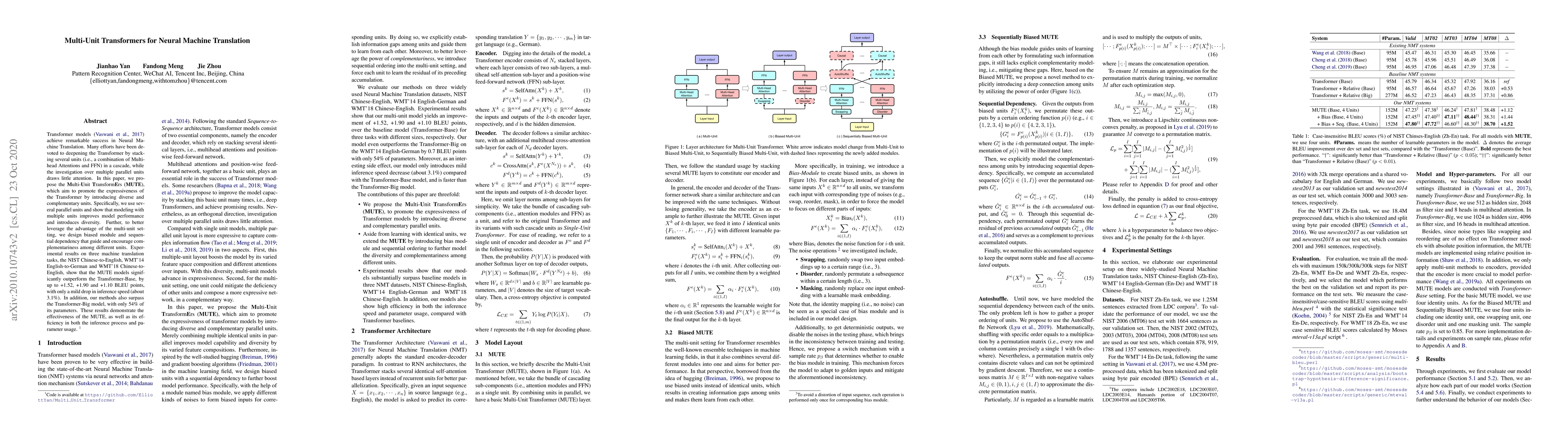 The paper presents Multi-Unit Transformers (MUTE) with biased modules and sequential dependencies to improve the expressiveness of Transformer models for NMT.