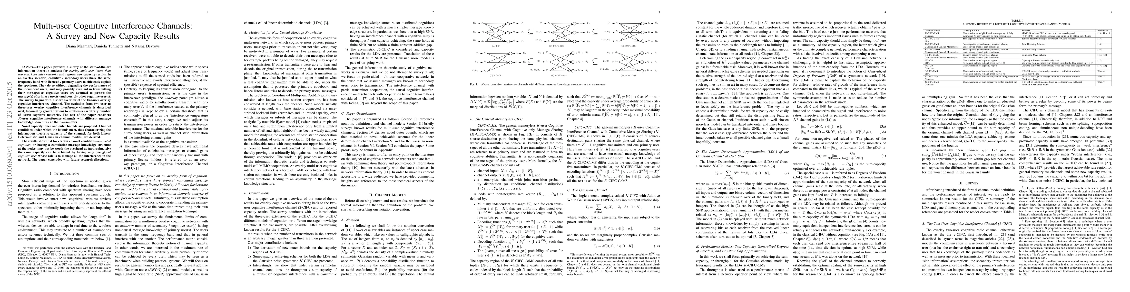 This paper surveys and advances the understanding of multi-user cognitive interference channels, proposing new capacity bounds for K-user scenarios. It reveals that for specific conditions, a single global cognitive user can achieve similar capacity as distributed cognition, simplifying network management.