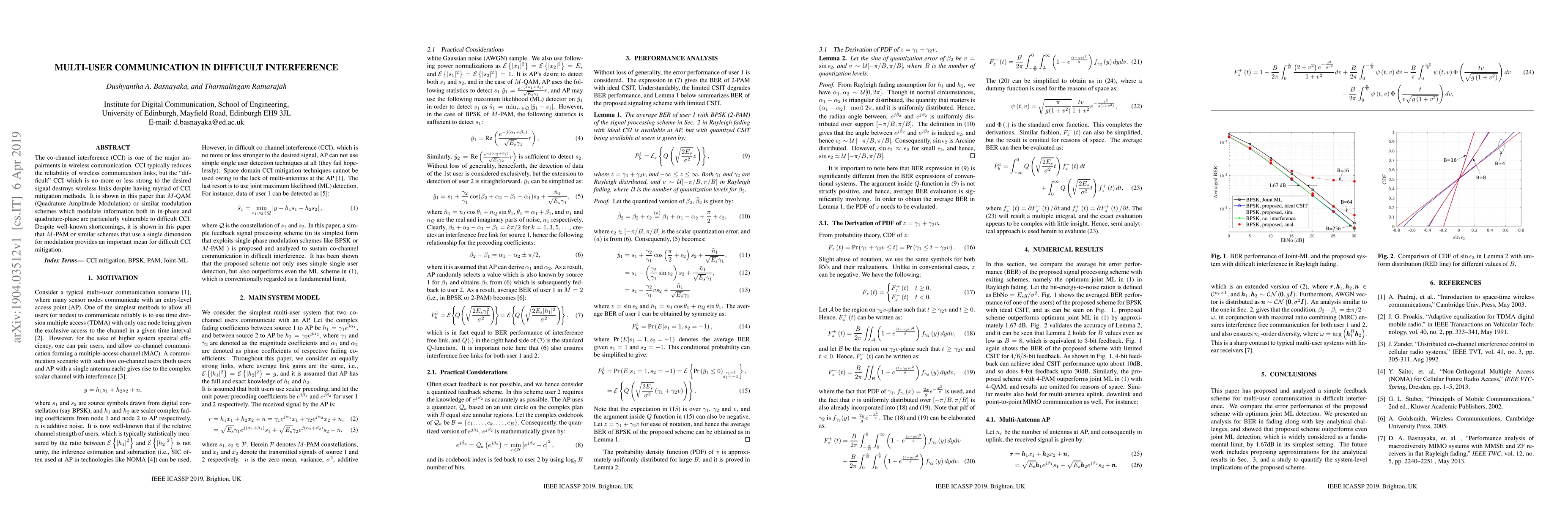 The co-channel interference (CCI) is one of the major impairments in wireless communication. CCI typically reduces the reliability of wireless communication links, but the difficult CCI which is no more or less strong to the desired signals destroys wireless links despite having myriad of CCI mitigation methods. It is shown in this paper that M-QAM (Quadrature Amplitude Modulation) or similar modulation schemes which modulate information both in in-phase and quadrature-phase are particularly vulnerable to difficult CCI. Despite well-known shortcomings, it is shown in this paper that M-PAM or similar schemes that use a single dimension for modulation provides an important mean for difficult CCI mitigation.