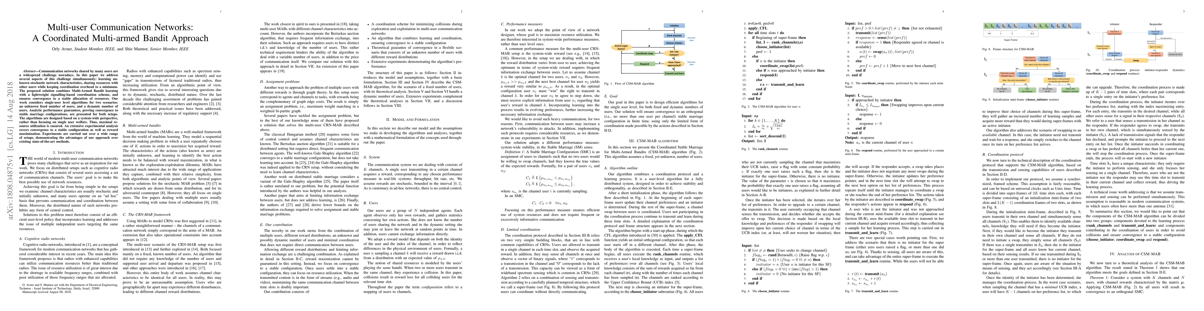 This paper proposes a coordinated multi-armed bandit approach to optimize resource allocation in multi-user communication networks, ensuring stable allocation and maximal resource utilization.