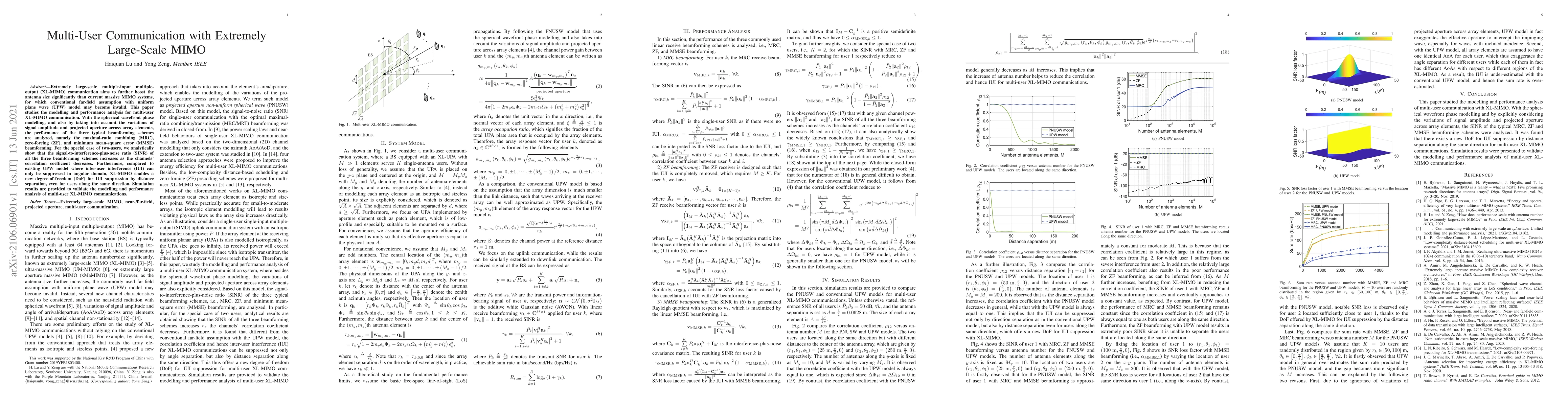 This paper investigates multi-user communication in Extremely Large-Scale MIMO systems, showing that XL-MIMO enables new degrees of freedom for interference suppression, especially at longer distances.